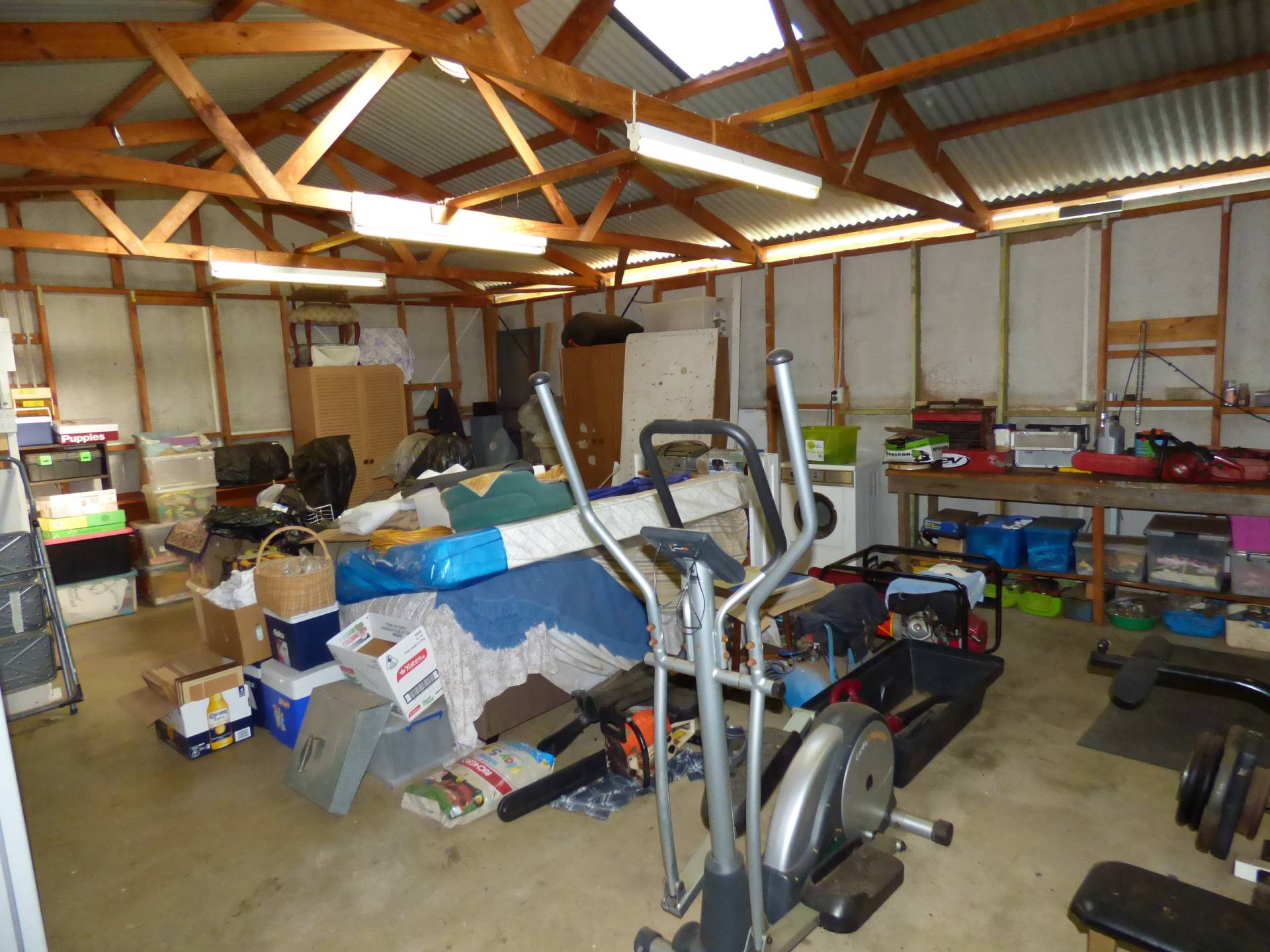Off this area is the workshop. This is fully enclosed with a roller door, shower and toilet. Currently also used as a home gym.