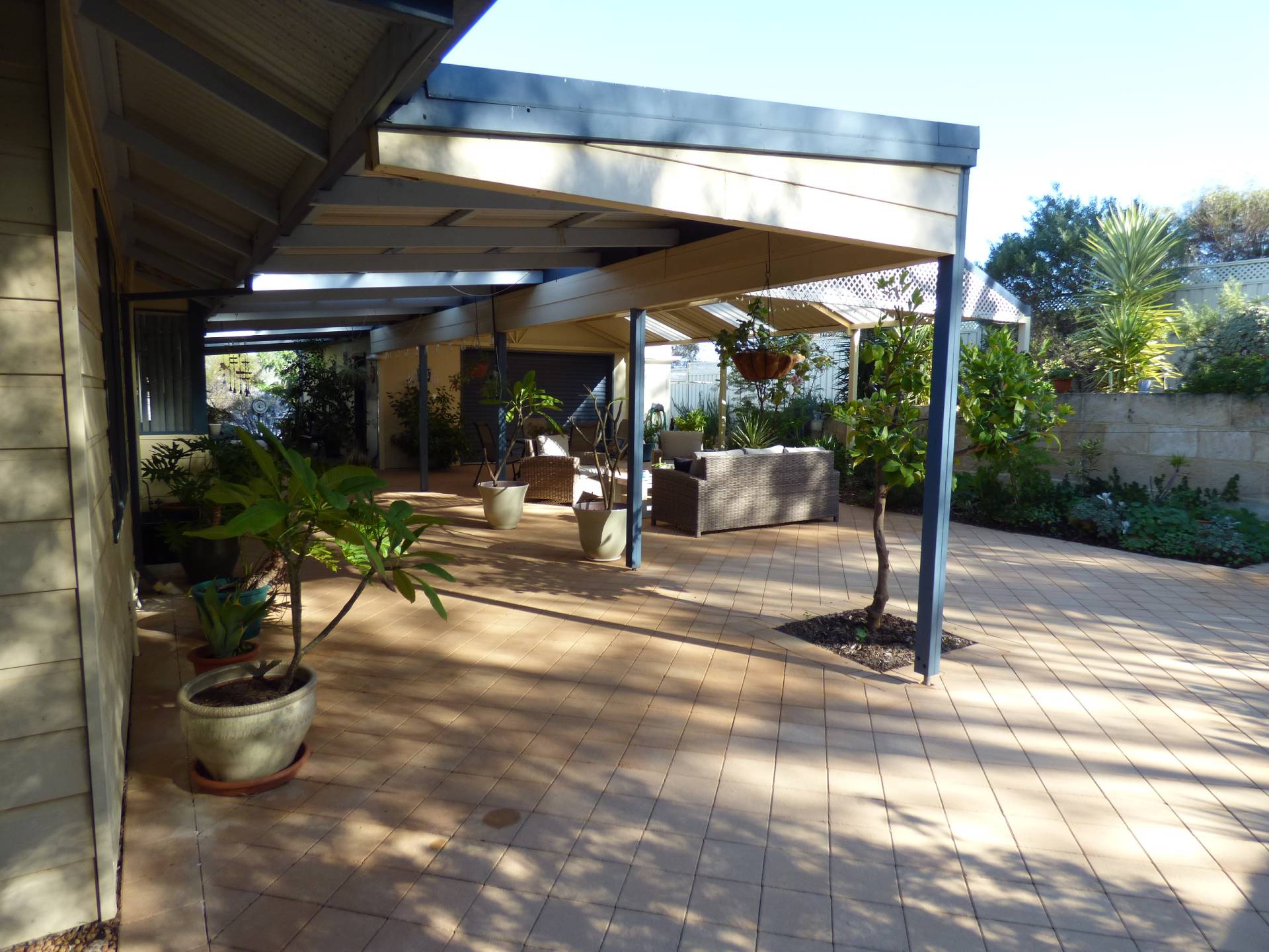 Outside you walk into the massive patio area all paved and with beautiful gardens, a fantastic entertaining are for you and your guests.