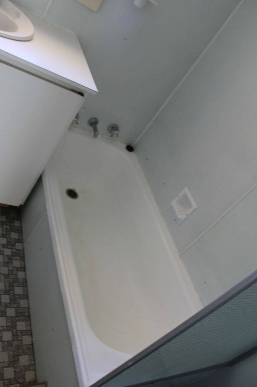 There is a separate dining room area with nice blue tile patterned lino just off the kitchen.