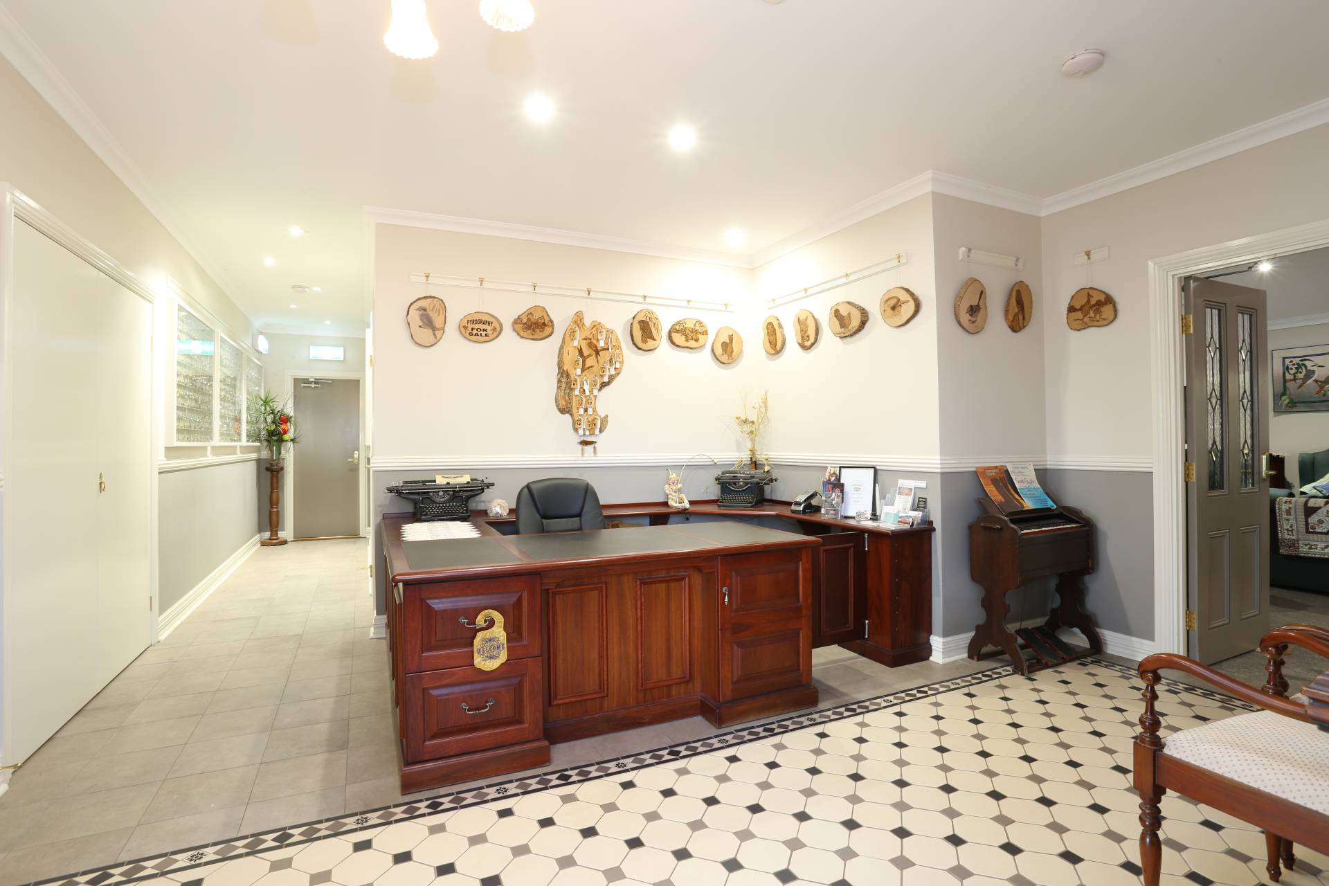 MANAGERS LIVING QUARTERS – Is approximately 100sqm in size and is attached to the Guesthouse. The beautiful master private quarters includes a living room/office and a stunning master bedroom with a walk-in robe and ensuite. The living quarters has its own unique charm with elegant lace window treatments and vintage furniture fittings.
