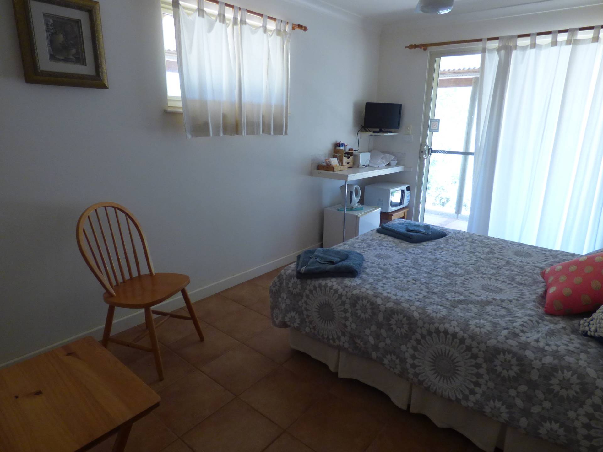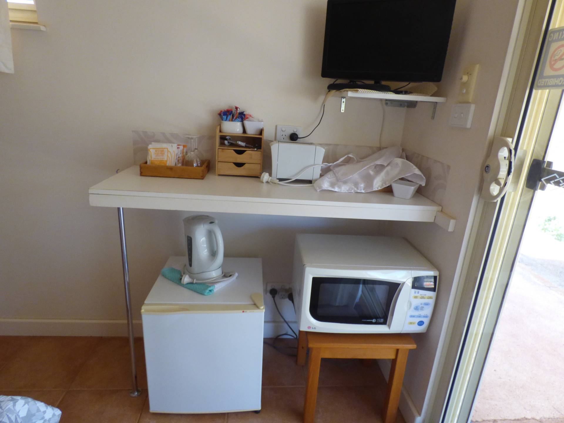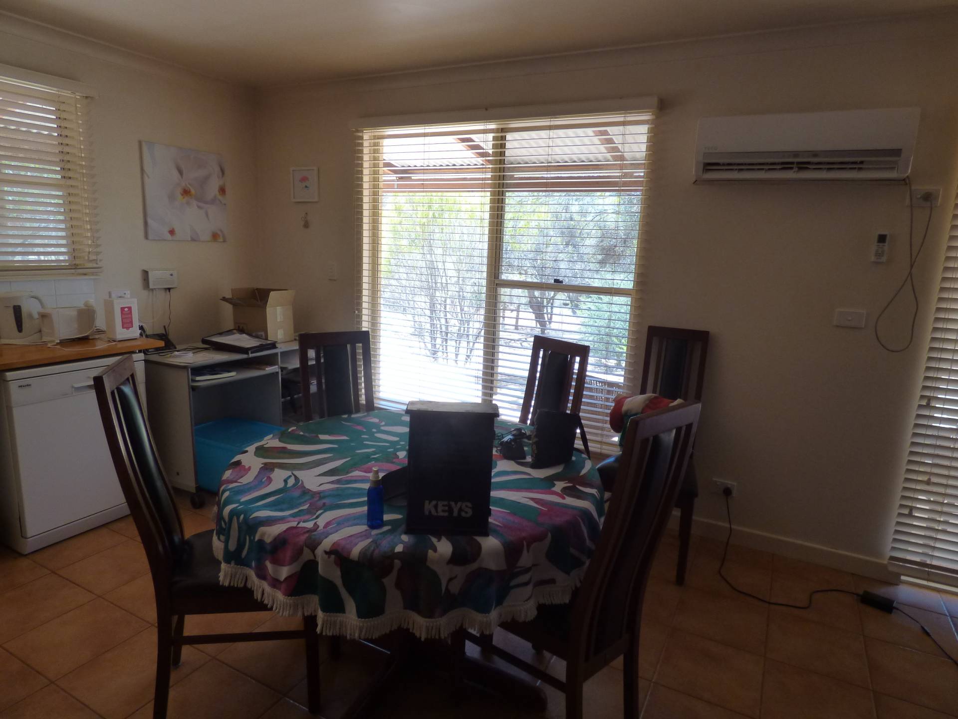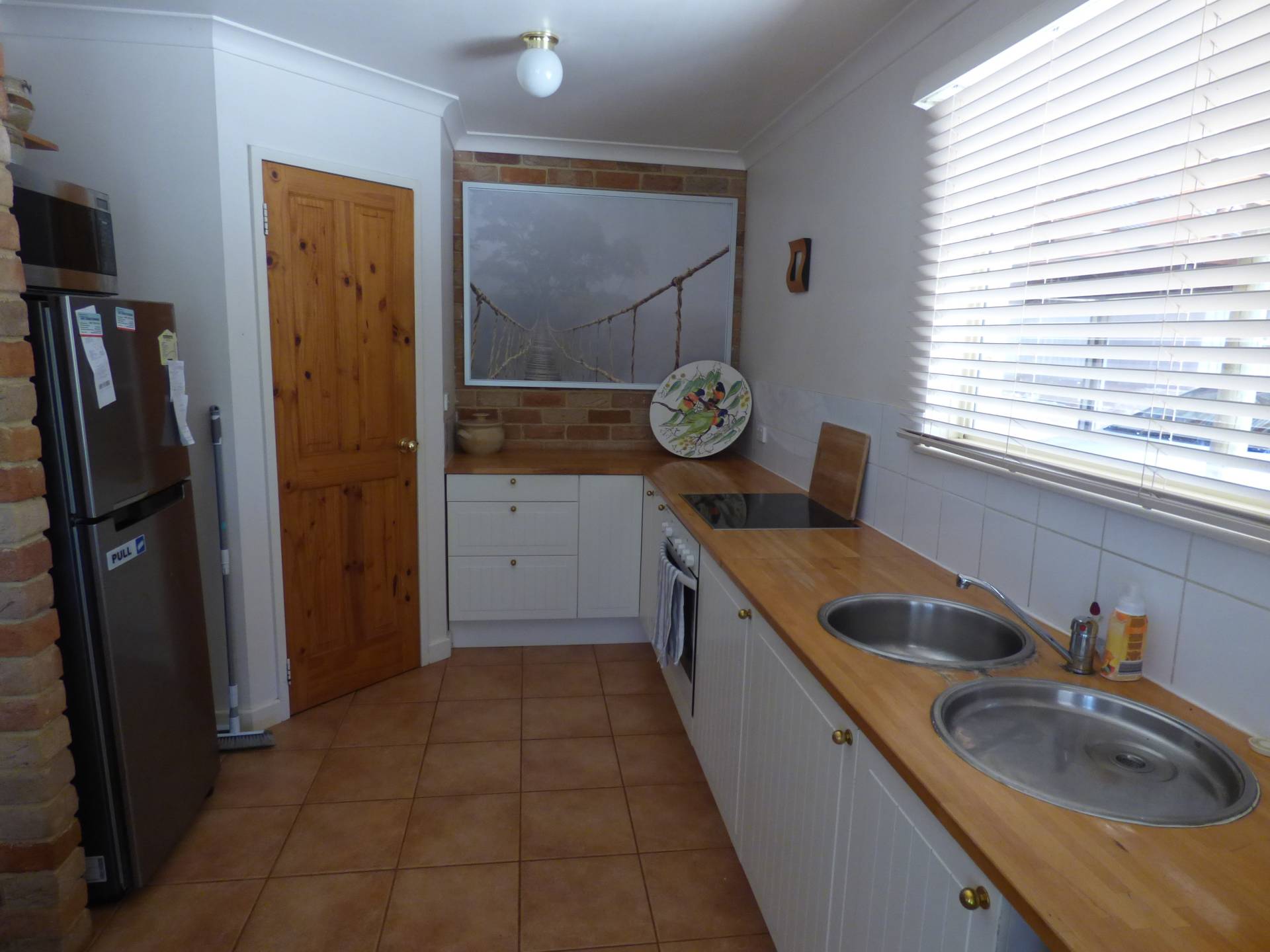 The lounge/dining/kitchen area has a split system air conditioner AND a log fire for those cool winter nights. The lounge area wraps around into the kitchen. The kitchen is very tidy with plenty of storage and bench space plus a dish washer, electric cooking and a large pantry.