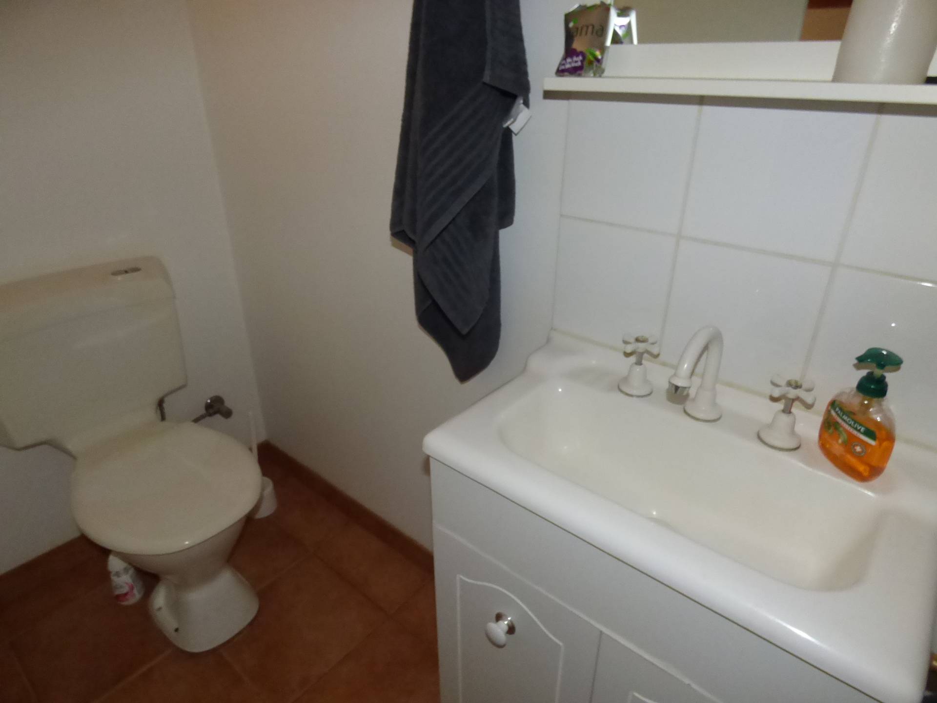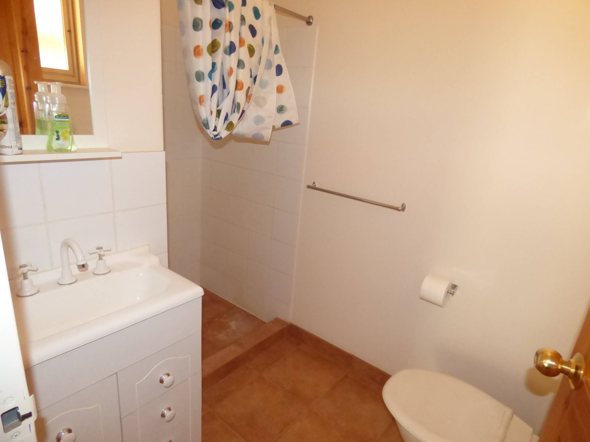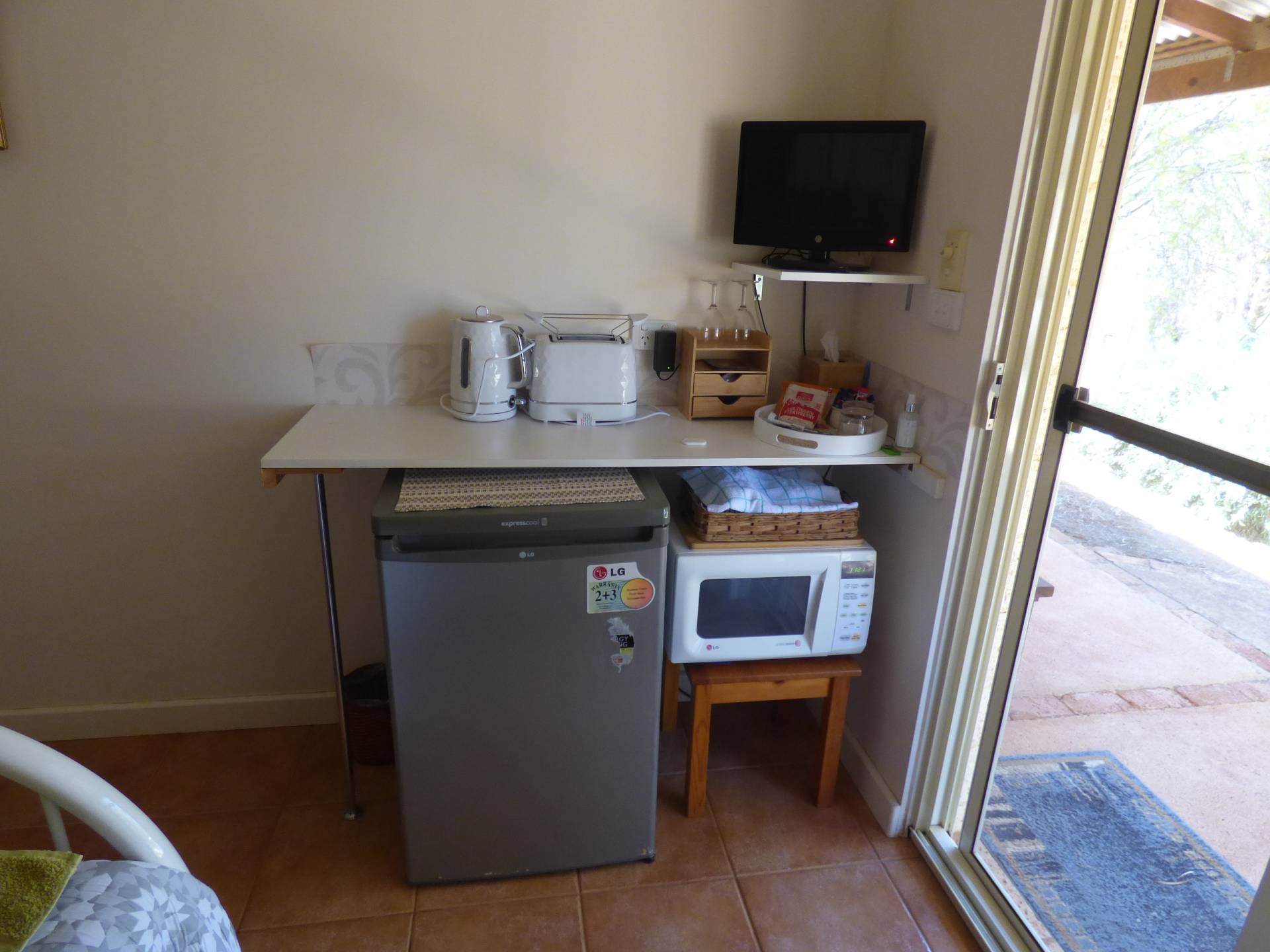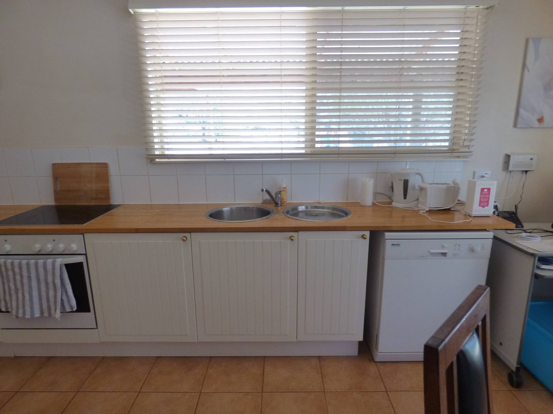 The lounge/dining/kitchen area has a split system air conditioner AND a log fire for those cool winter nights. The lounge area wraps around into the kitchen. The kitchen is very tidy with plenty of storage and bench space plus a dish washer, electric cooking and a large pantry.