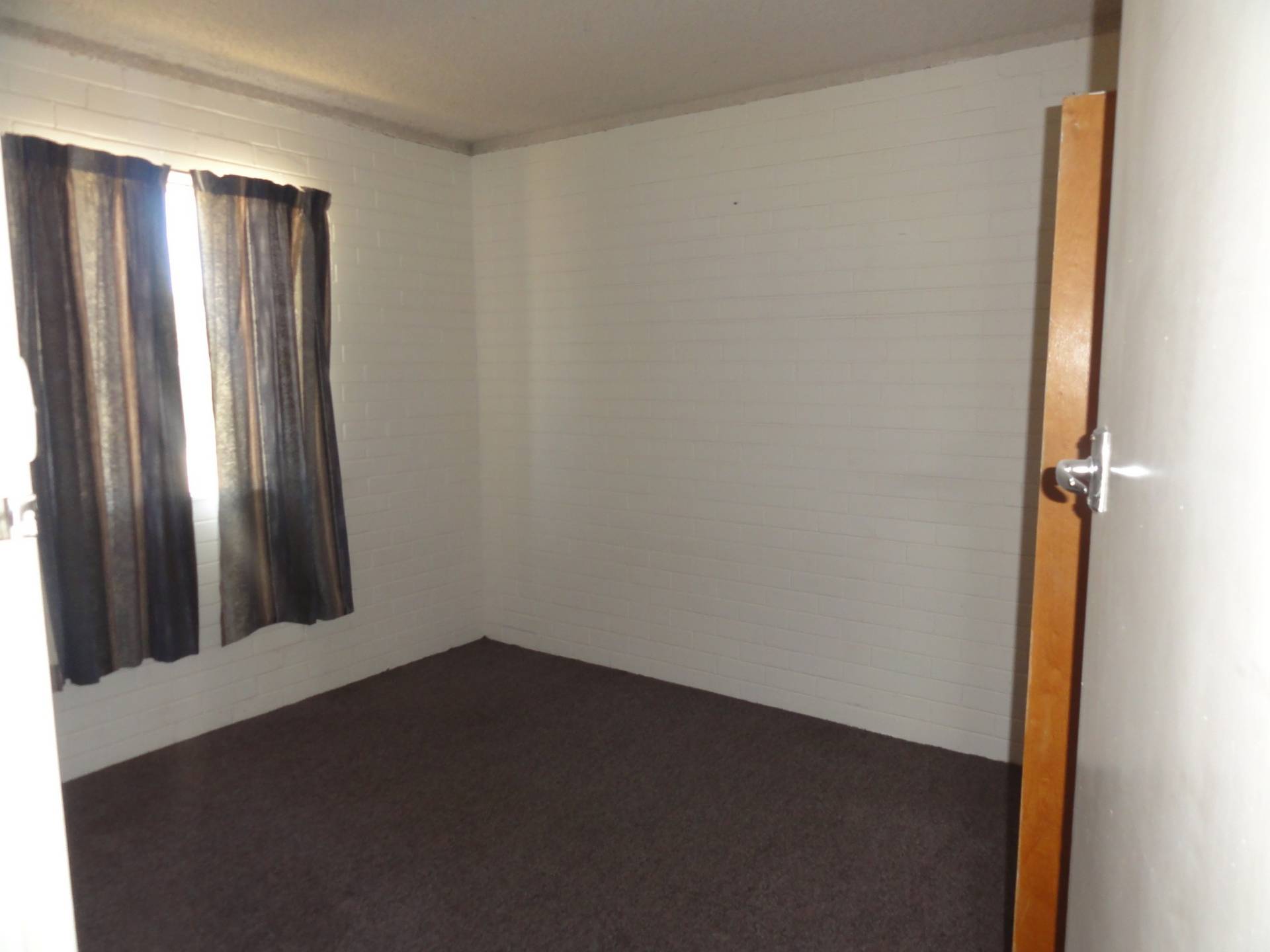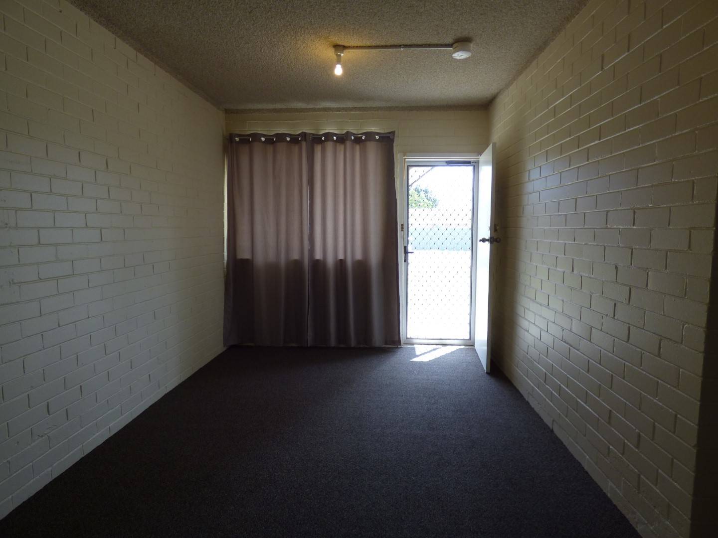 This is a spacious 2 bedroom unit. End pocket kitchen contains benchtop, cupboards and on bench oven. Carpeted throughout the unit. The bedroom has a built-in robe for storage, with window coverings throughout. The toilet is located in the bathroom which features a corner shower. A shared laundry room is located to the back of the units.