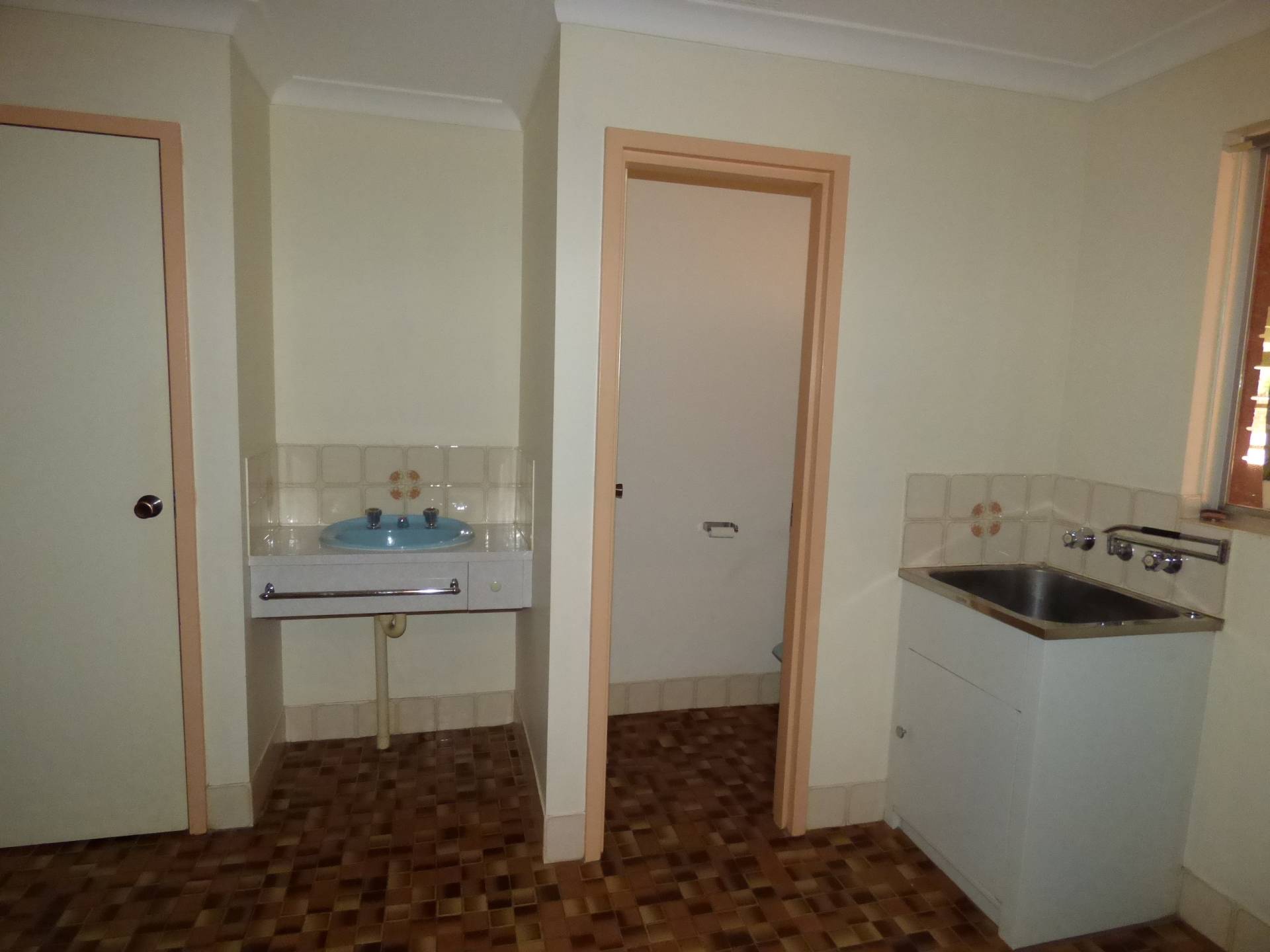 On entry, you walk past the large laundry area which also has a vanity and separate toilet area.
