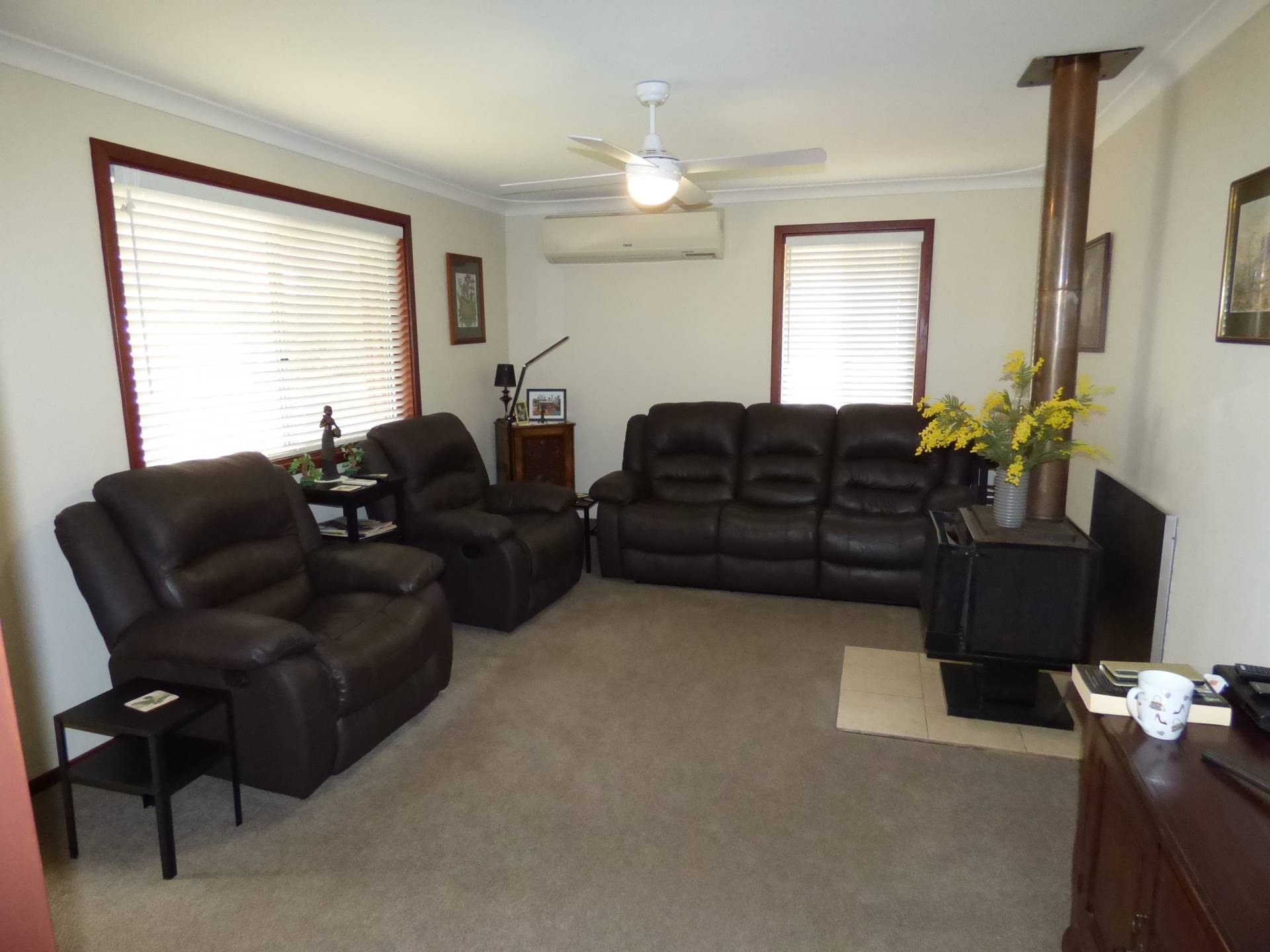 -          Carpeted loungeroom features a wood fireplace and reverse cycle air conditioning