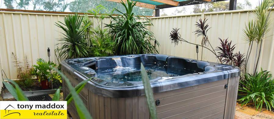 -          Feature undercover entertainment area including fully fenced spa and ready to mend above ground pool