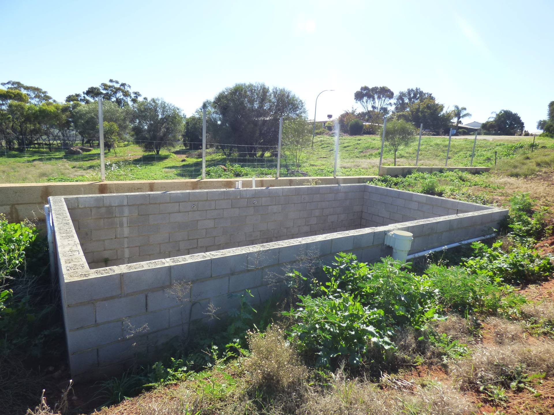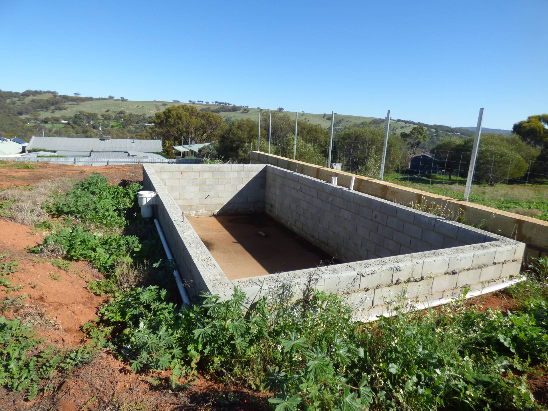 Already in place is a 3m limestone retaining wall, levelled house area and the beginning of a concrete swimming pool.