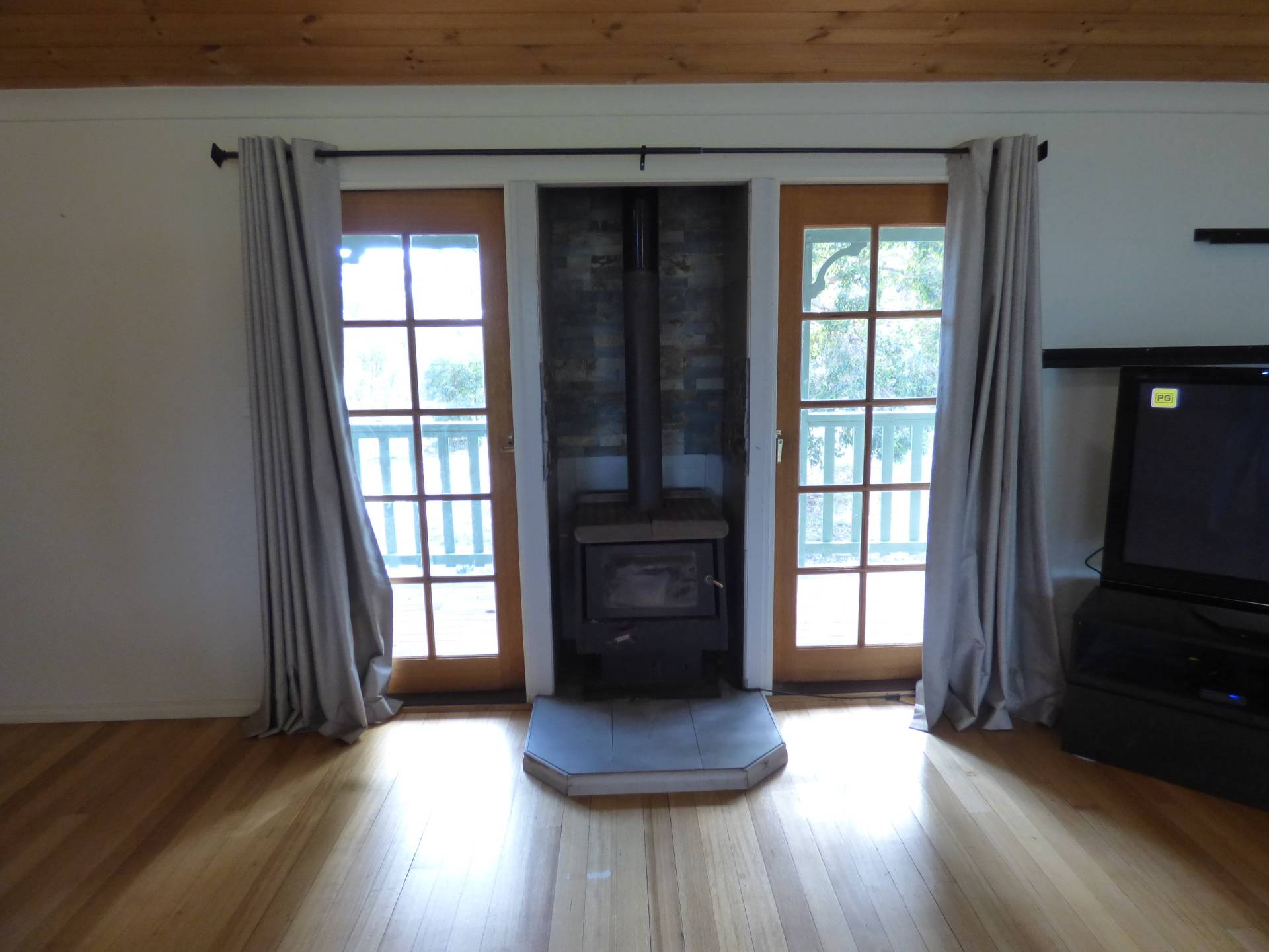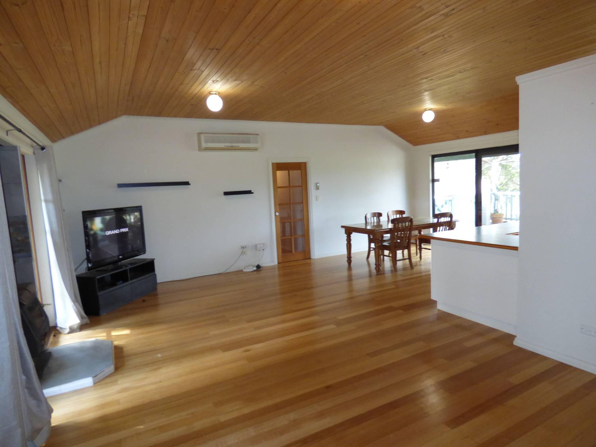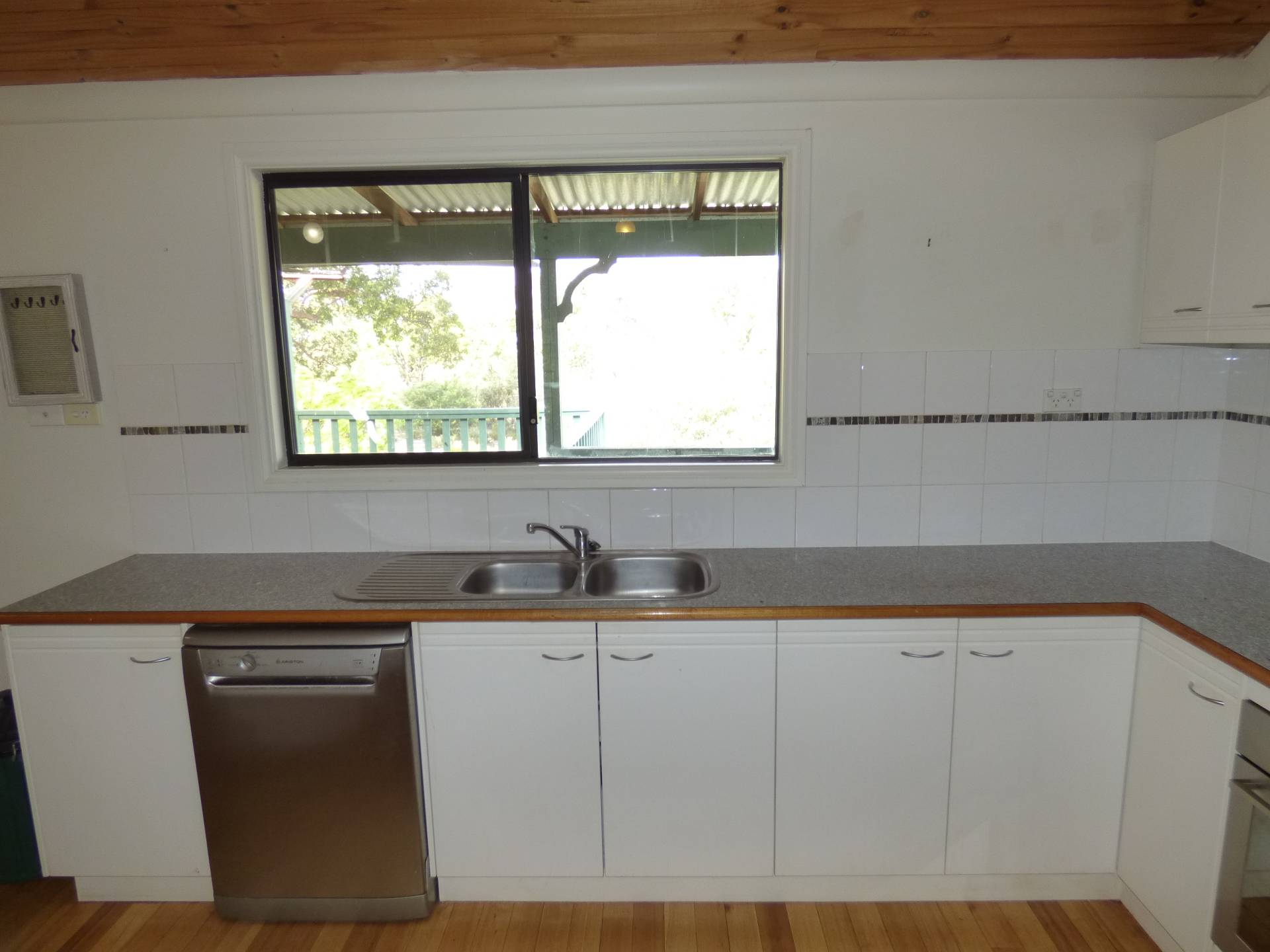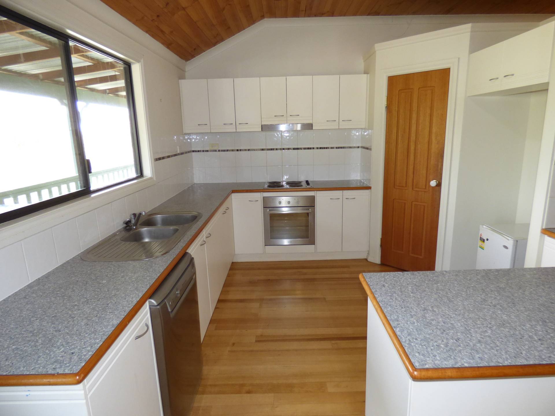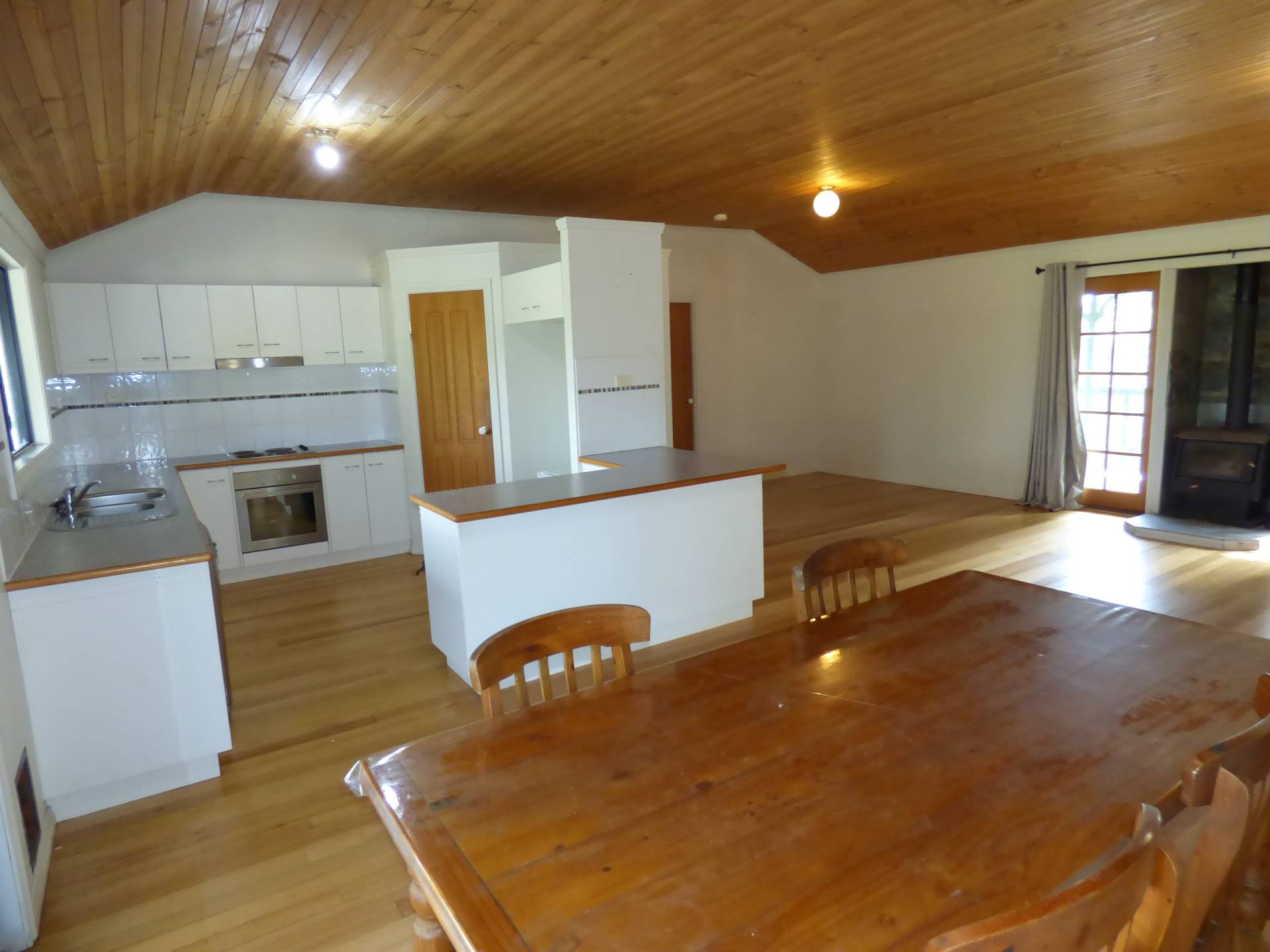 The kitchen includes a dishwasher, a walk-in pantry, built in oven and cook top and is part of the main family/meals area that is climate controlled by a large reverse cycle air conditioner as well as a log fire. The flooring throughout the whole house is Tasmanian Oak tongue and groove timber.