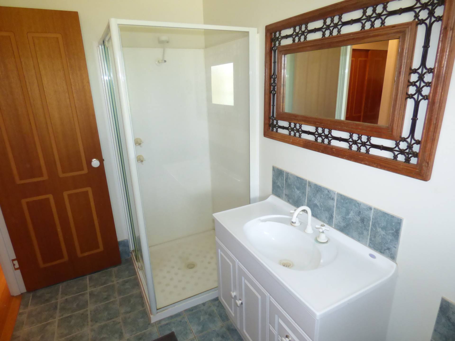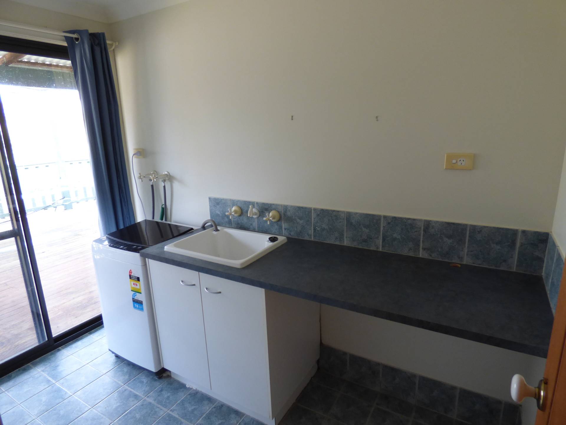-          Tiled laundry with long bench space