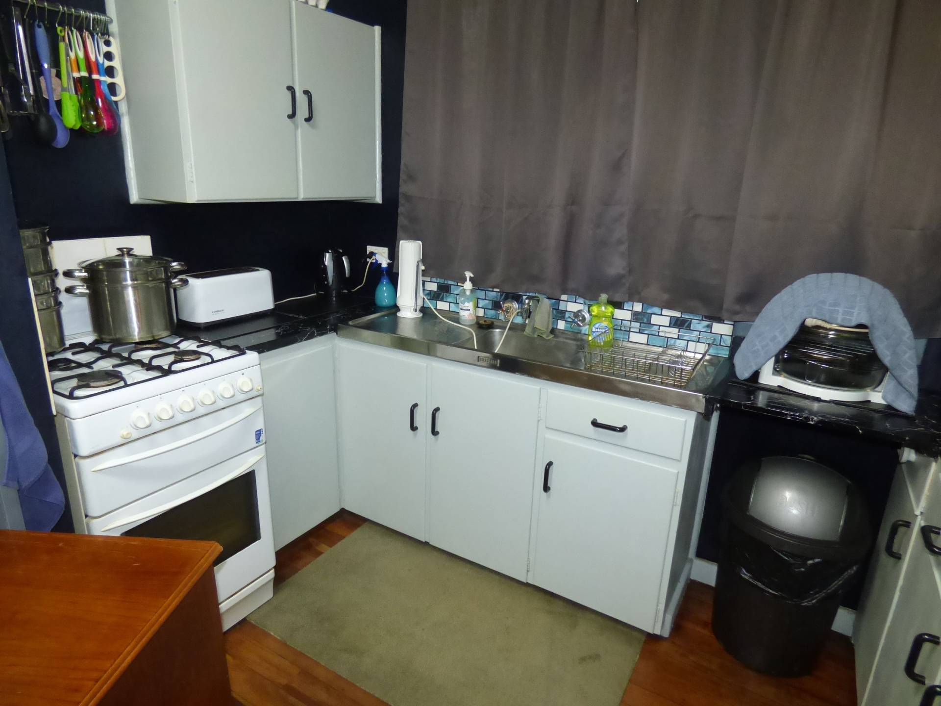 Kitchen dining area features a standalone gas oven/stove and a large server’s hutch to loungeroom opening this space up.