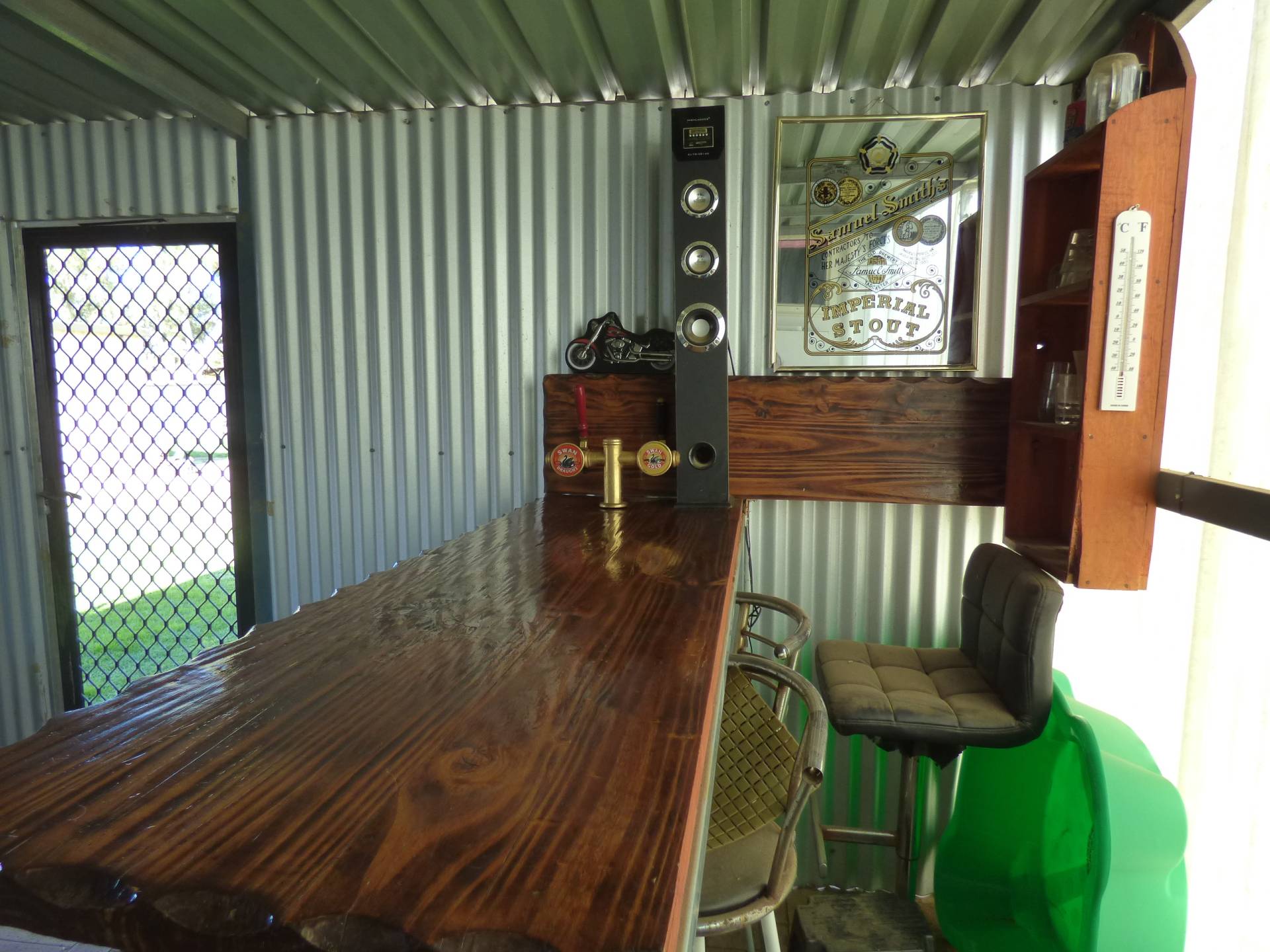 -          Feature enclosed rear entertainment area including log fire place and built-in bar