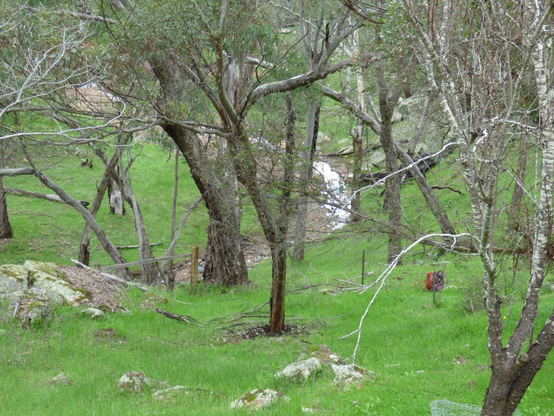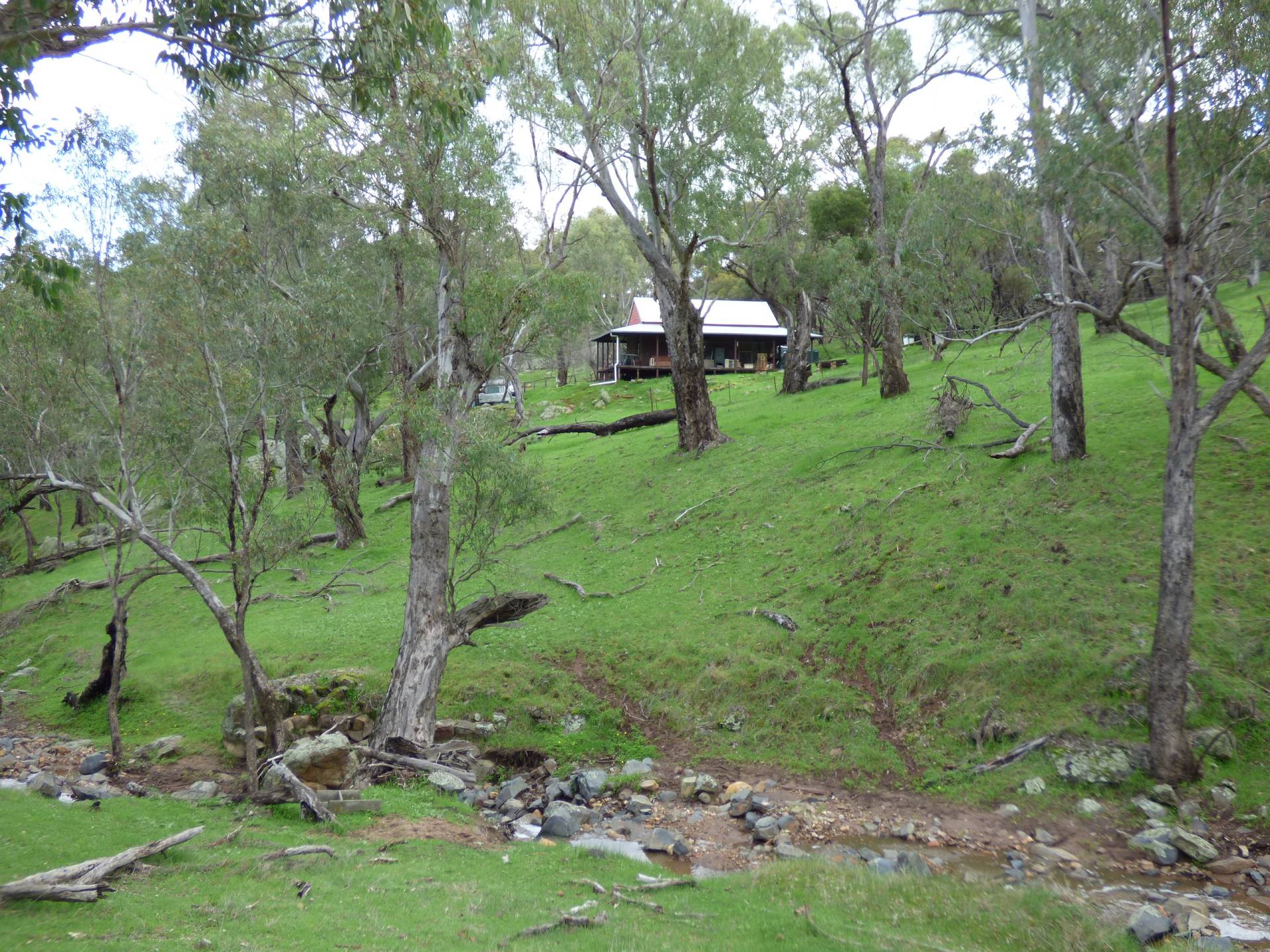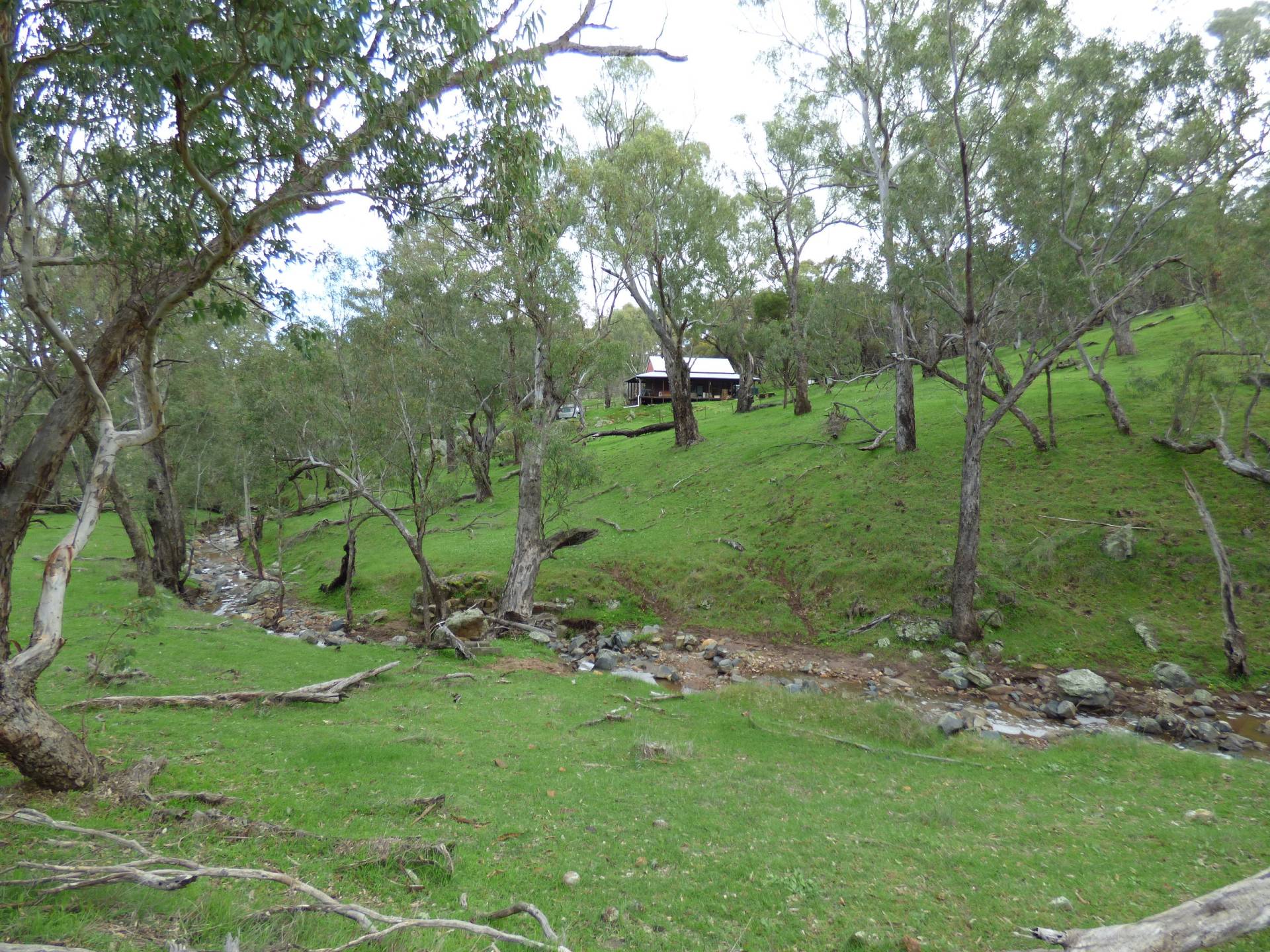 The block slopes steeply from the house down to the creek line then back up the hill to a cleared area.