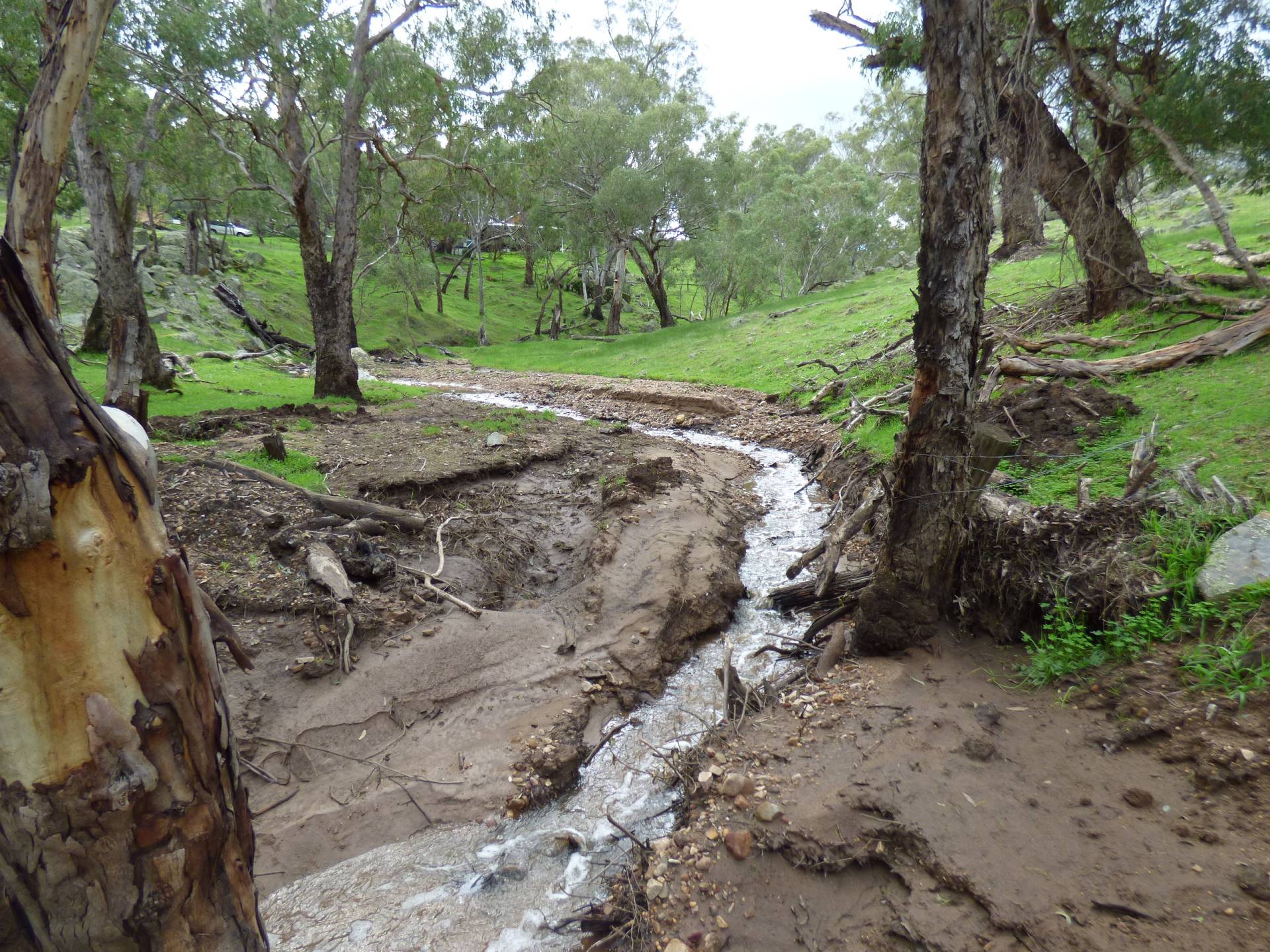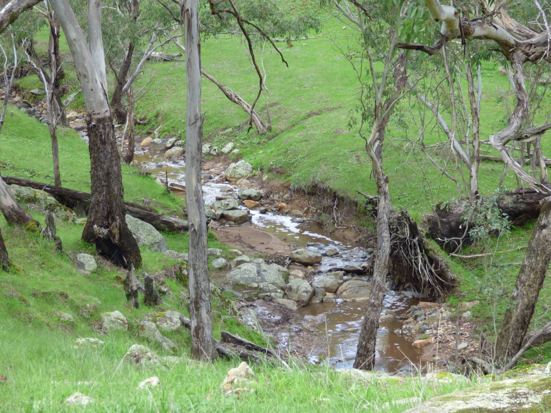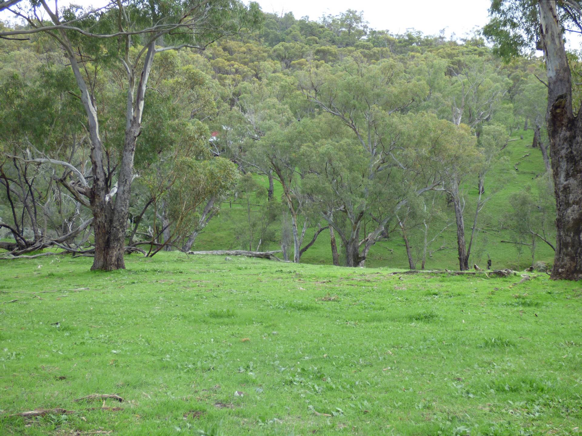 The block slopes steeply from the house down to the creek line then back up the hill to a cleared area.