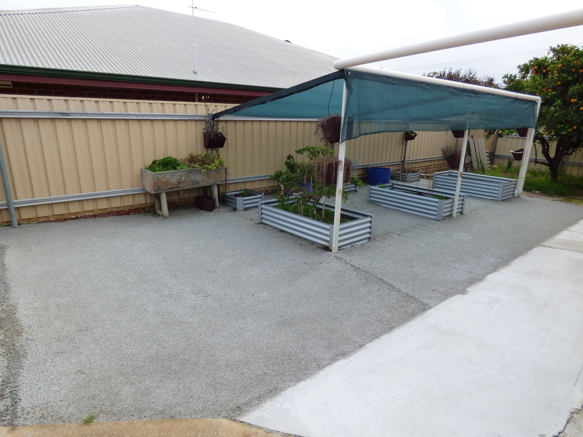 Located on a 1100m2 block, both the front and rear yards are complete with reticulated lawns and garden beds. The rear features double gate laneway access as well as a large concrete and powered workshop shed with trailer lean to beside. Adding to storage space are 3 x garden sheds close to the above ground vegetable planters. A neat entertaining area completes this garden.