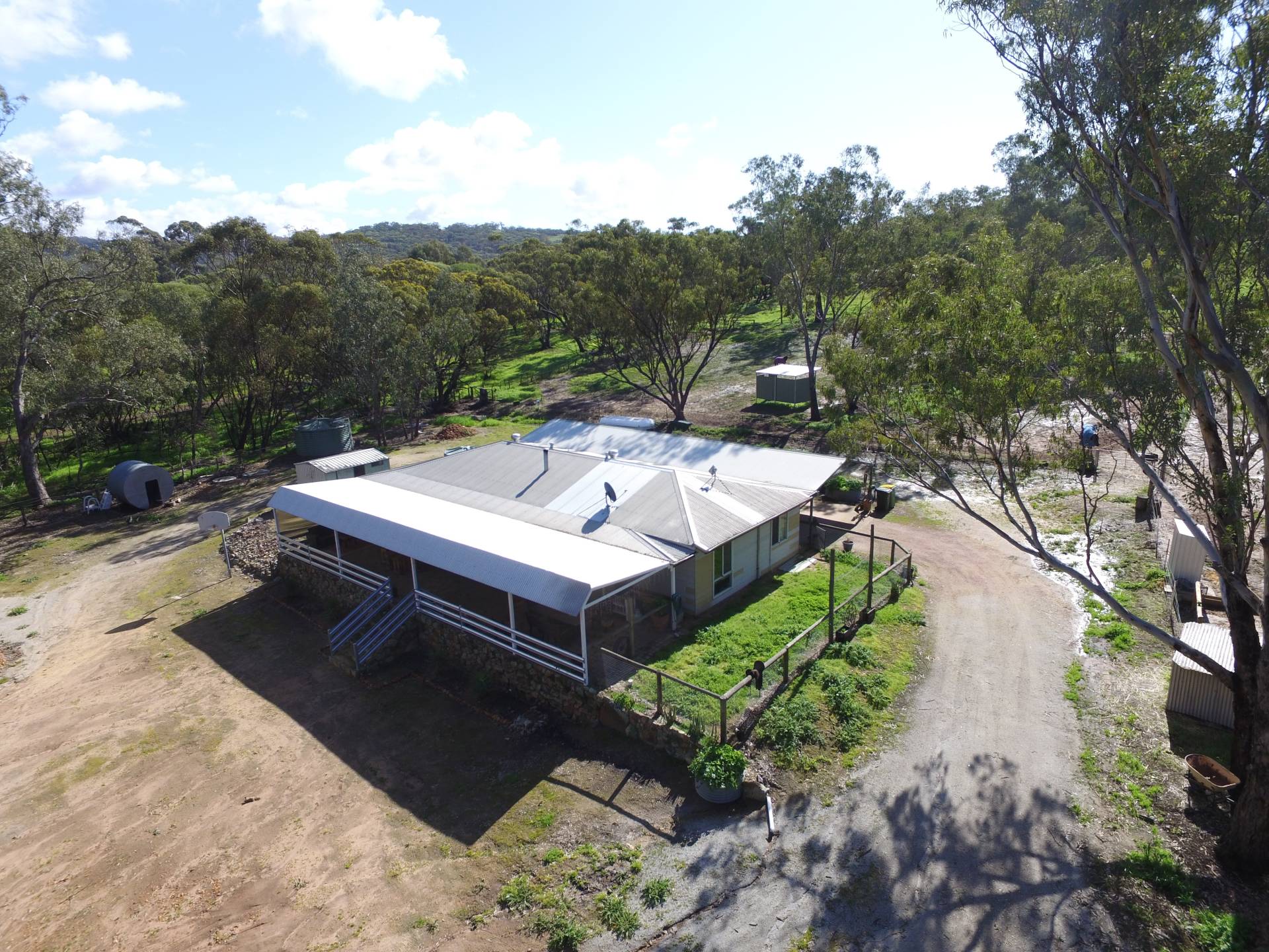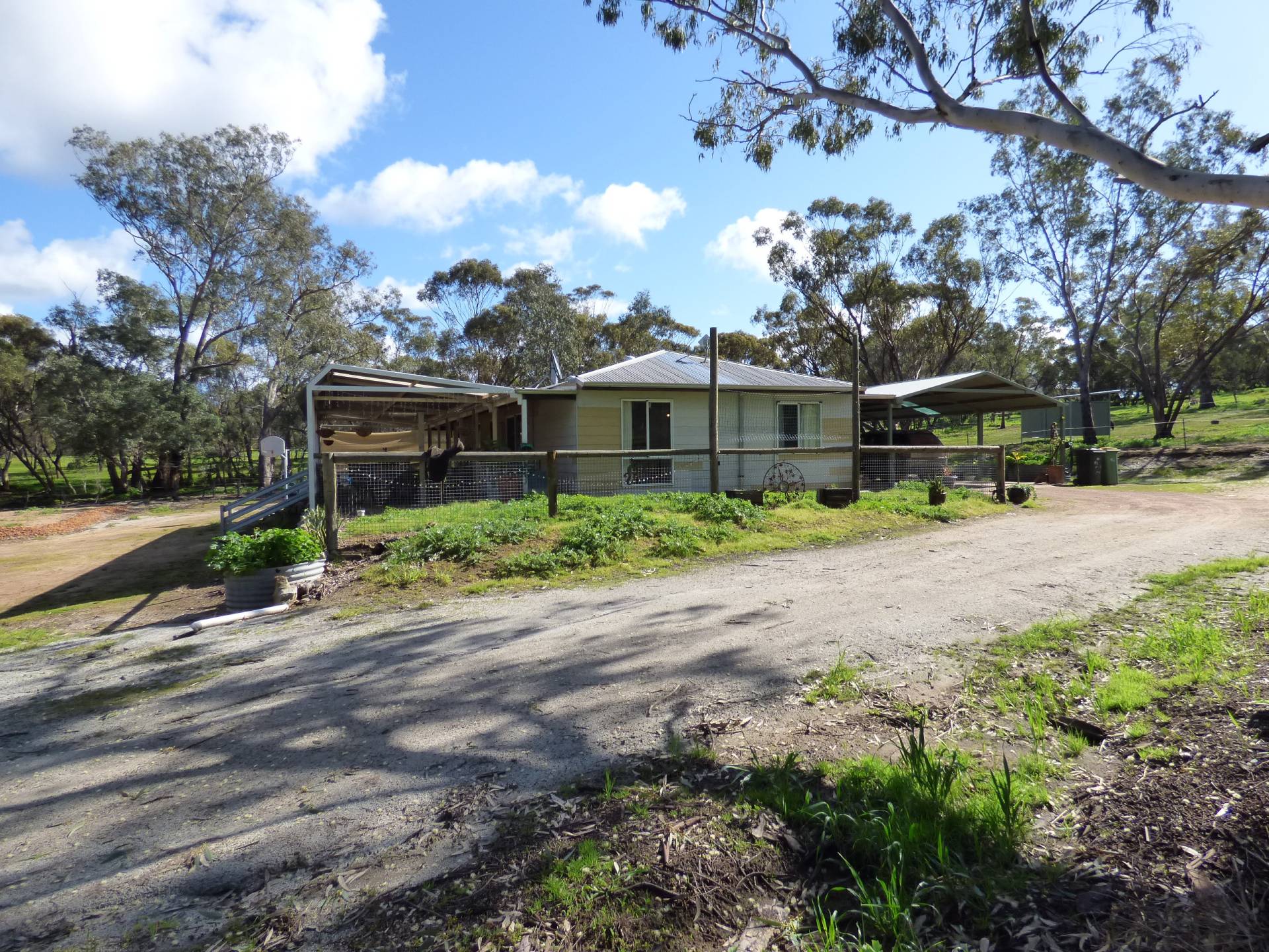Small chook yard and orchid to the front of the property and a small garden shed to the side of the house.