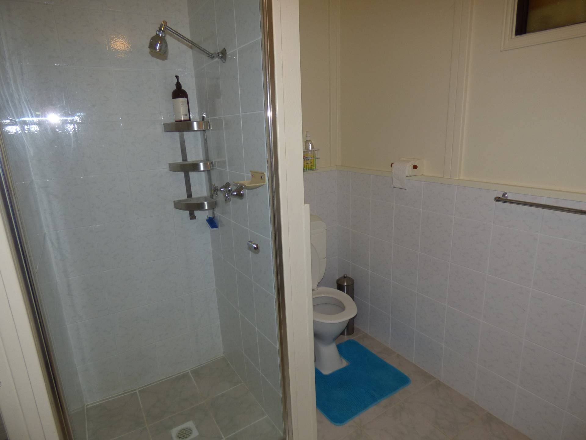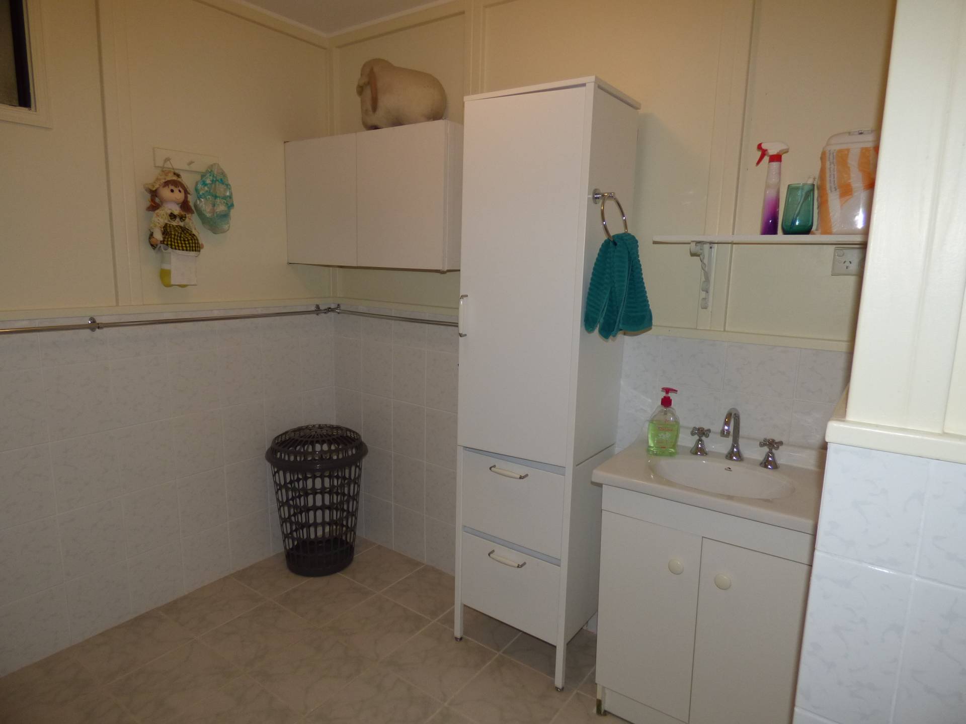 The passageway give access to three of the bedrooms which all feature reverse cycle air-conditioning, light fixtures and window treatments. Two of these rooms have built in robes. The main bathroom is open and functional with a glass door shower, toilet and storage cabinet. Laundry has separate linen storage and allows access to the rear patio.