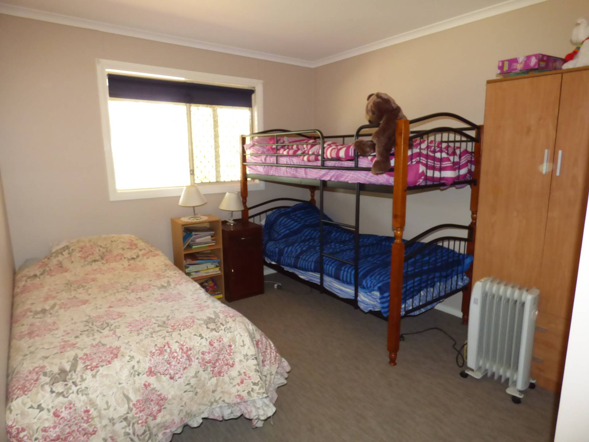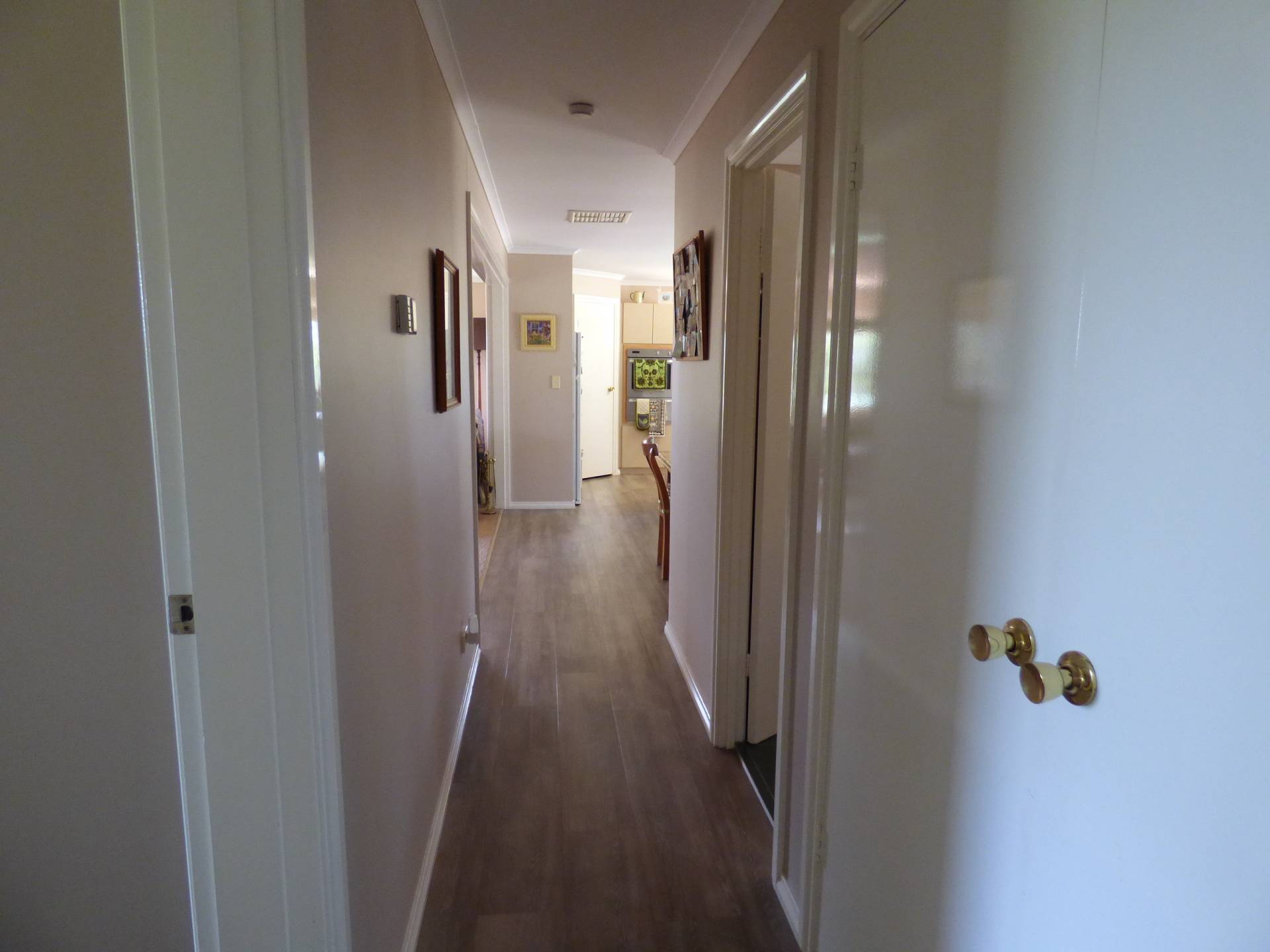 The passageway allows access to the bedrooms and wets areas. All three bedrooms are carpeted and practical. Bedroom 2 features a wall-to-wall storage area with shelving and hanging space. The master bedroom includes a walk-in robe.