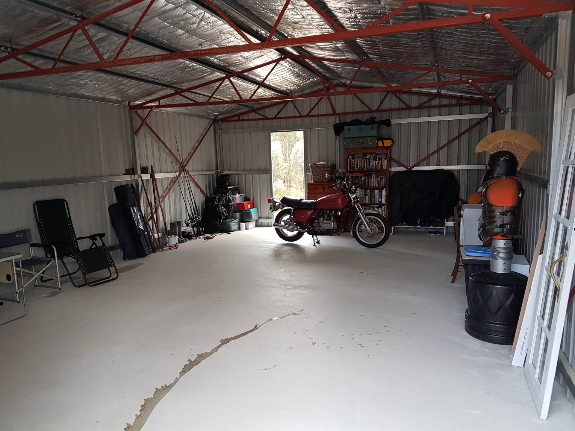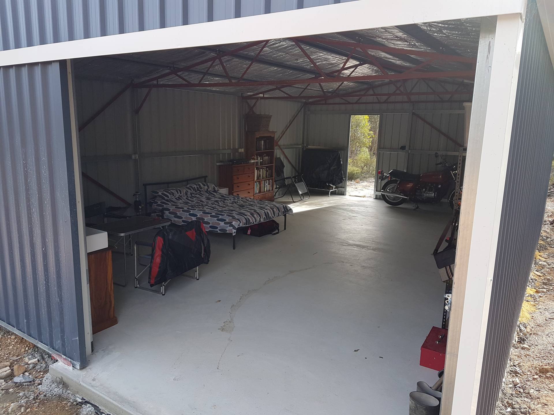 -          Colourbond 9 x 6m work shop shed with concrete flooring
