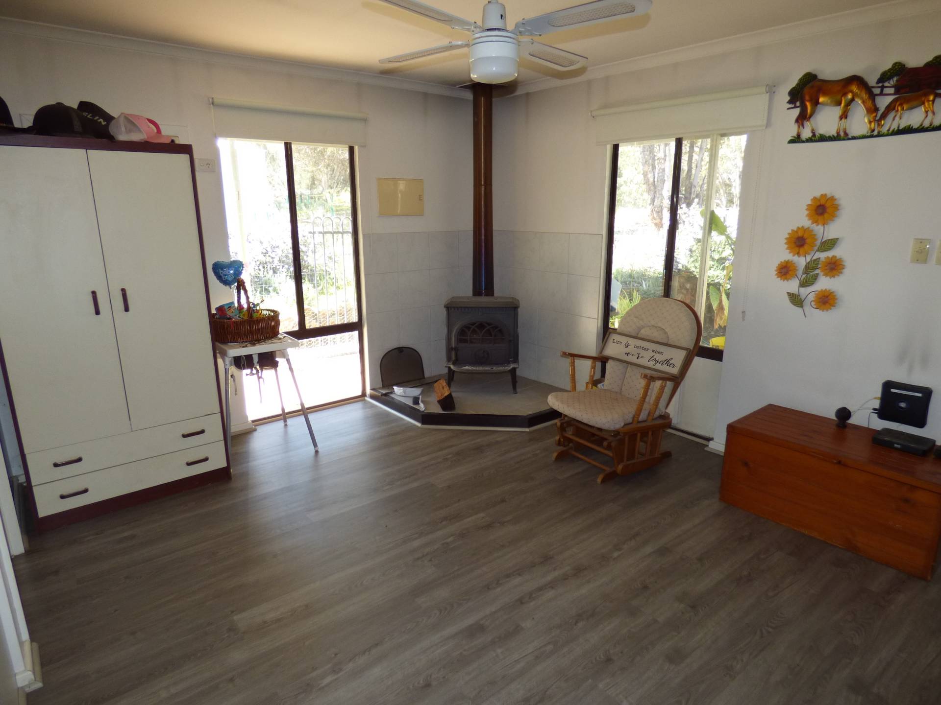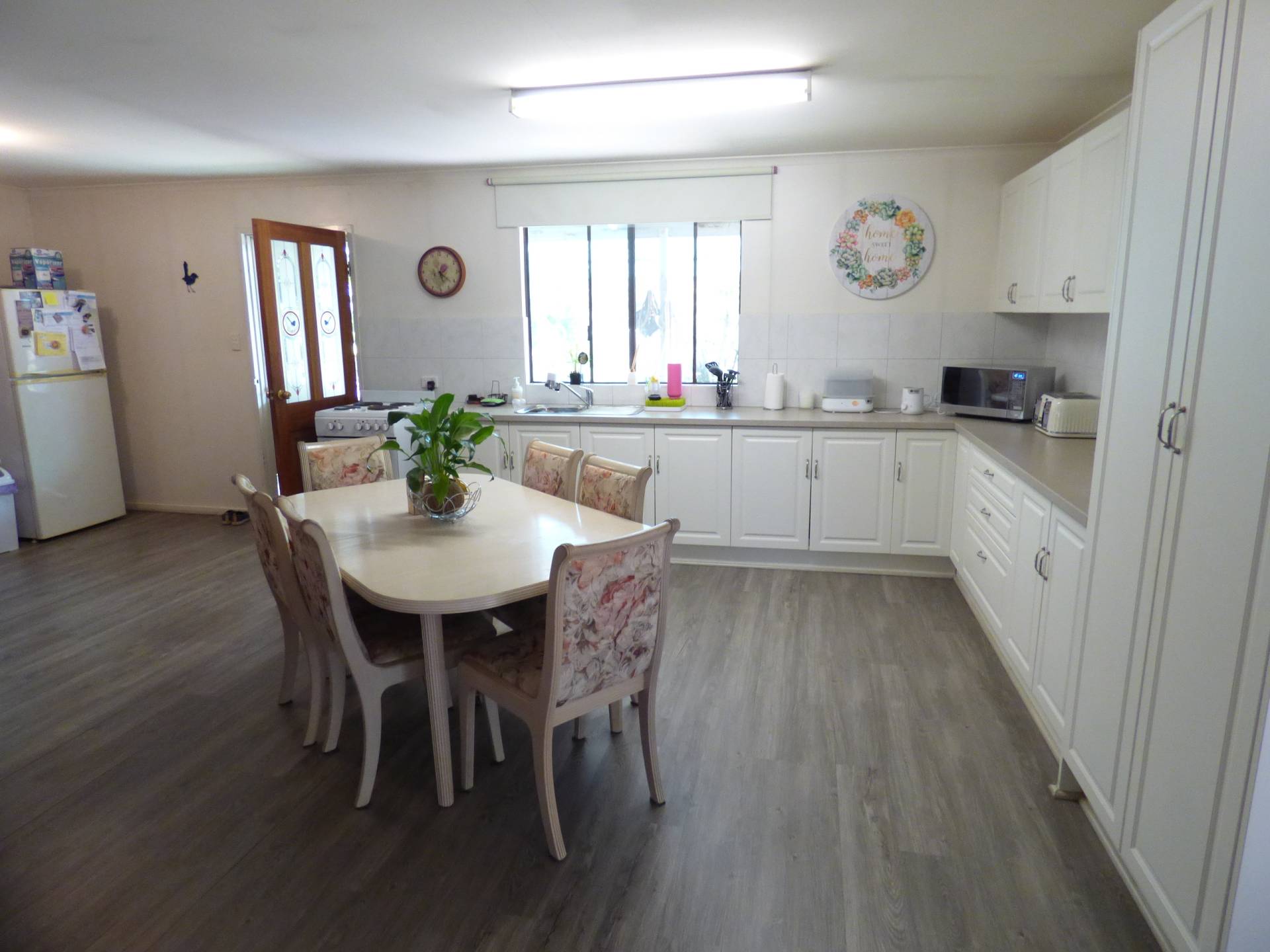 The Home is a neat 2 Bedroom Hardi Plank and Iron roof home with Main Bedroom, 2nd bedroom, Large new Kitchen with masses of cupboards, Lounge/ Dining area with Log Fire plus Split System A/Cond, Bathroom and an Outside Laundry with an extra toilet and shower.