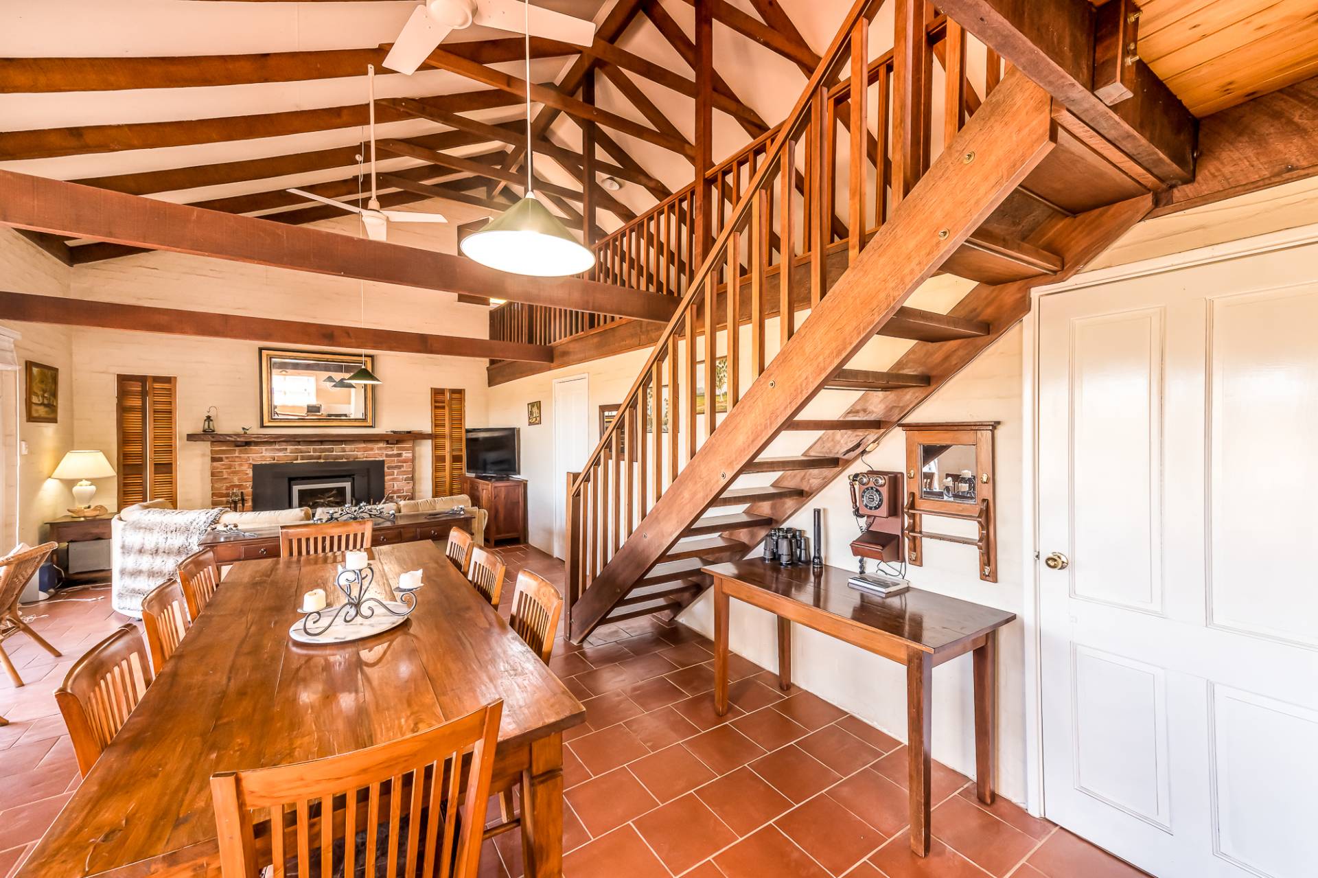 The homestead features a large mezzanine floor that sleeps all those guests that will want to spend the weekend with you. There are 2 formal bedrooms, both double sized with built in robes, a separate bathroom with corner shower, bath and separate vanity basin. A separate toilet is located off of the laundry.