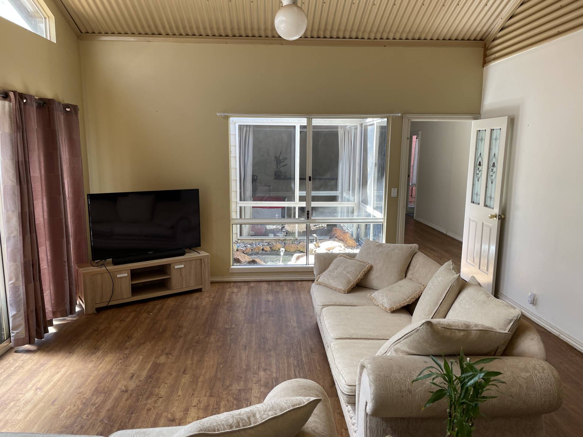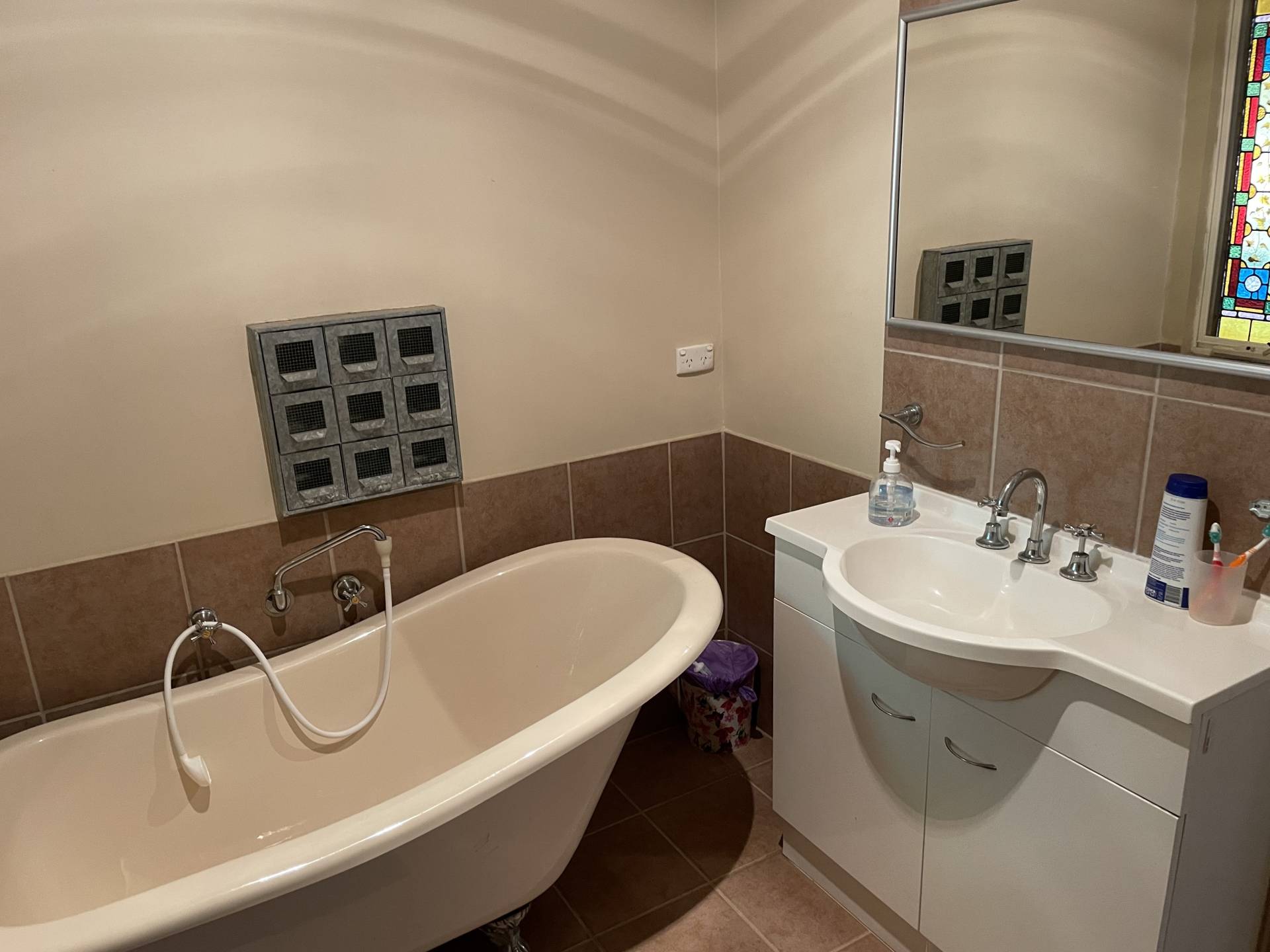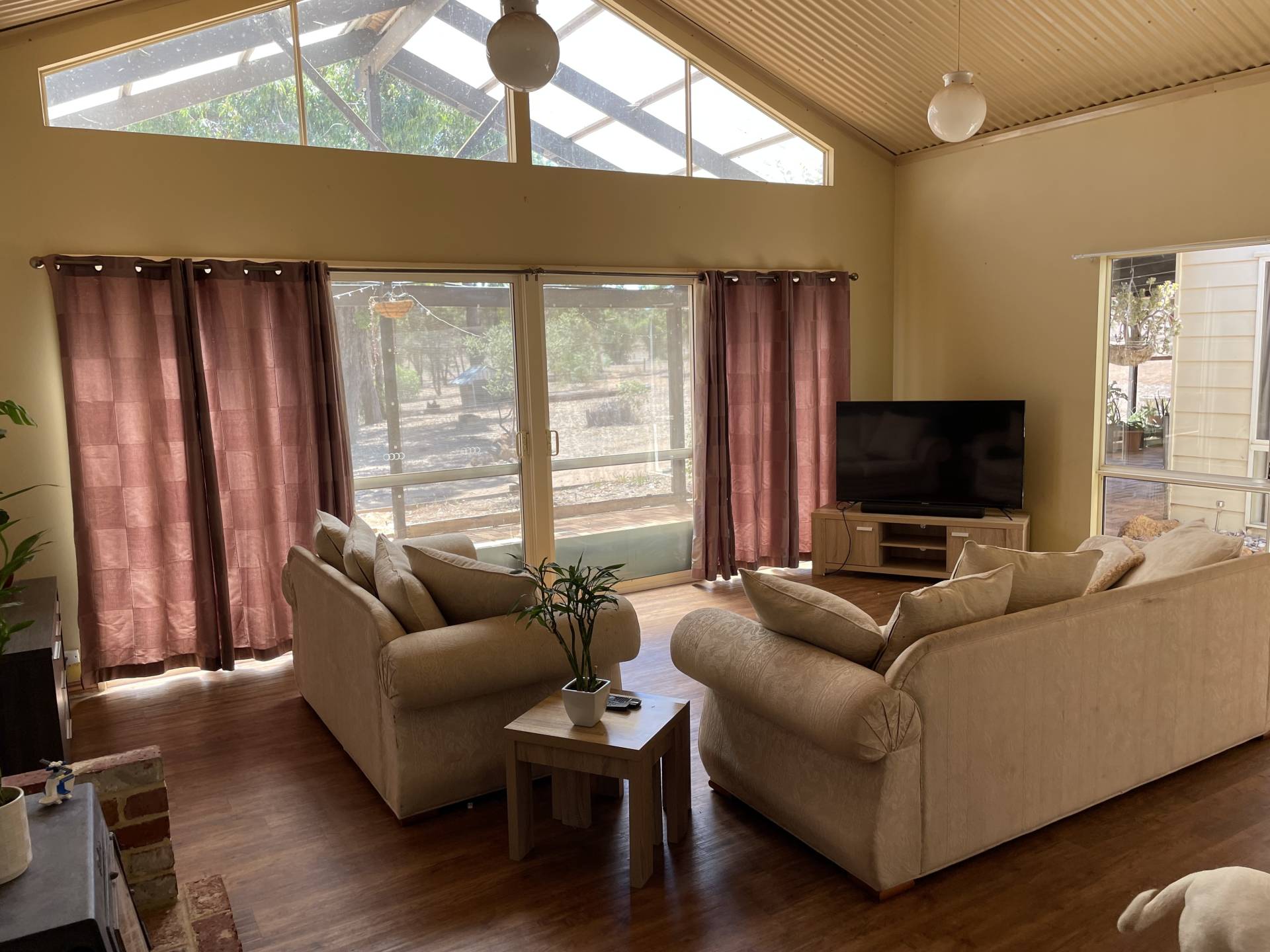 The home is sitting on a large 5 Acre corner block with some attractive areas of natural bush and trees to the front and side sections.( Heaven for the kids) There is even a Winter Creek that flows right across the back of the block via large culvet pipes. There is a large 9m x 6m Workshop/Garage for the tools and toys! From the front entrance door you walk into the Formal Lounge Room. This has a Atrium on one corner and decorative ceiling rose plus a Large Leadlight window leading out to the west planter area. To the left of the entrance is the Main Bedroom. This has a Bay Window and it's own Split System A/C. Off the bedroom is the huge ensuite with his and her vanities, shower and full size bath. There is also a large walk in robe of the bedroom.