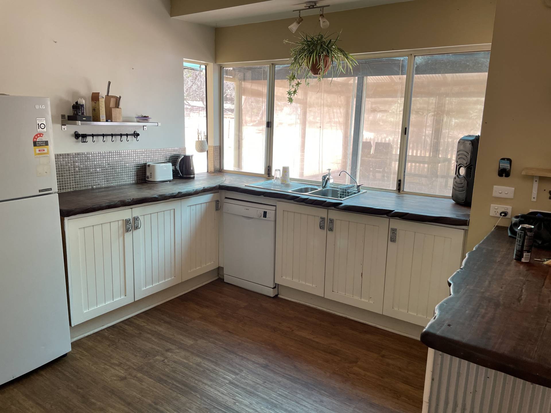 The Kitchen is impressive with Solid Jarrah bench tops, W/In Pantry, Euromaid Oven and dishwasher. Even a bay window over the sink. This looks out to the excellent Patio area out the back. The passage leads onto the other bedrooms and bathroom. Bed 4 is massive with it's own doorway out to the front verandah. Bed 5 is also large and has a 3 door robe. The main bathroom has a full size bath, separate shower recess and vanity. There is a separate toilet of the passage. The rear laundry is also a large room. This passageway leads the Granny Flat.