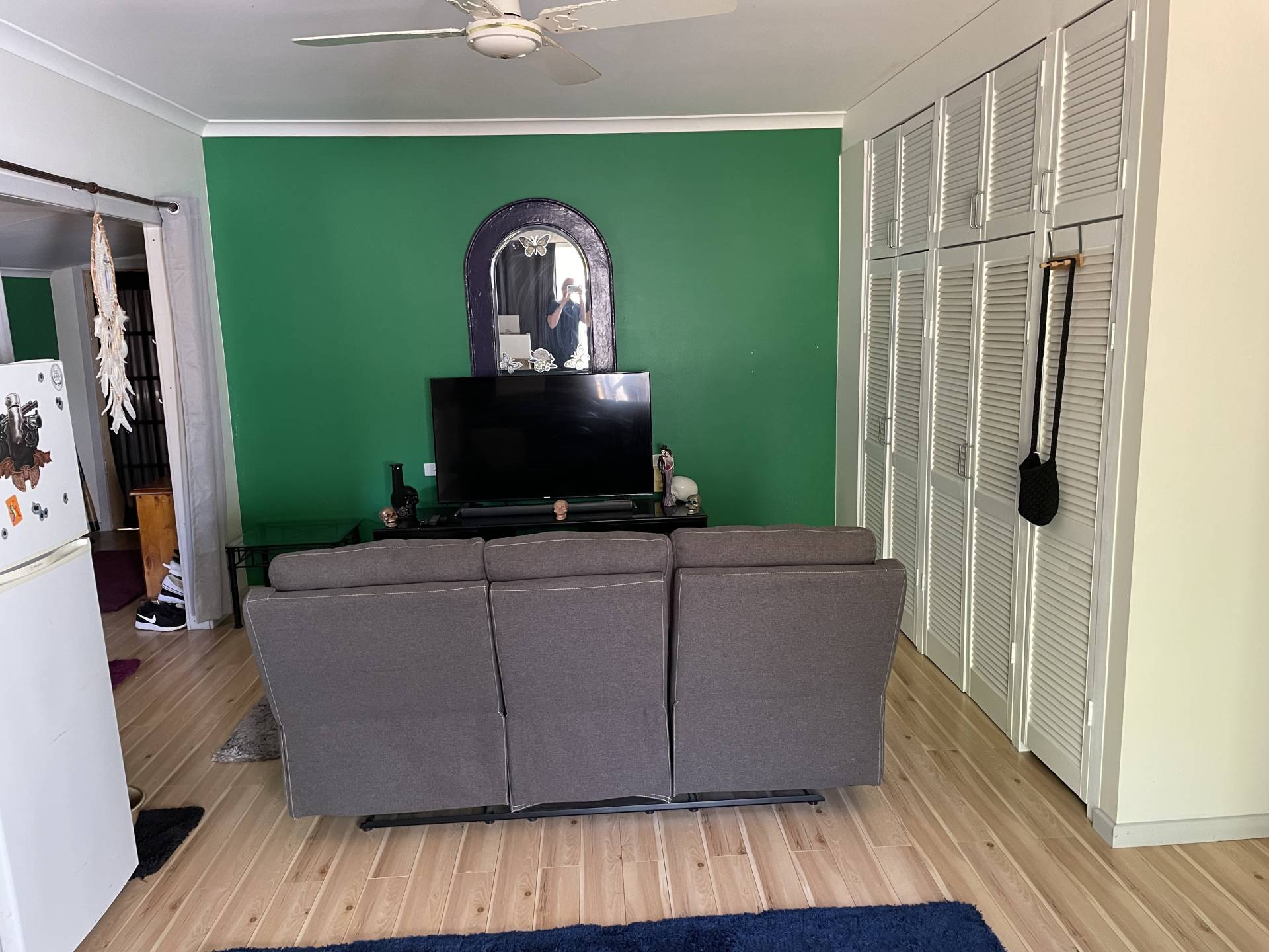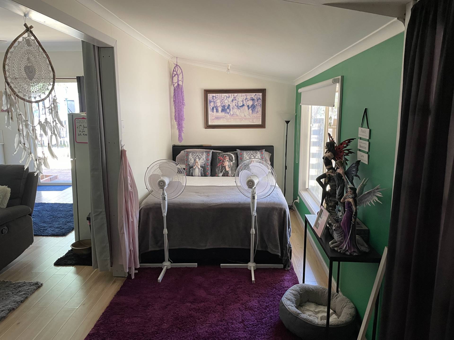 This has it's own Kitchen, Oven and hotplates, and the room is a combined lounge room. There are a wall of storage cupboards in the lounge. Then into the bedroom area which also has it's own entrance door.