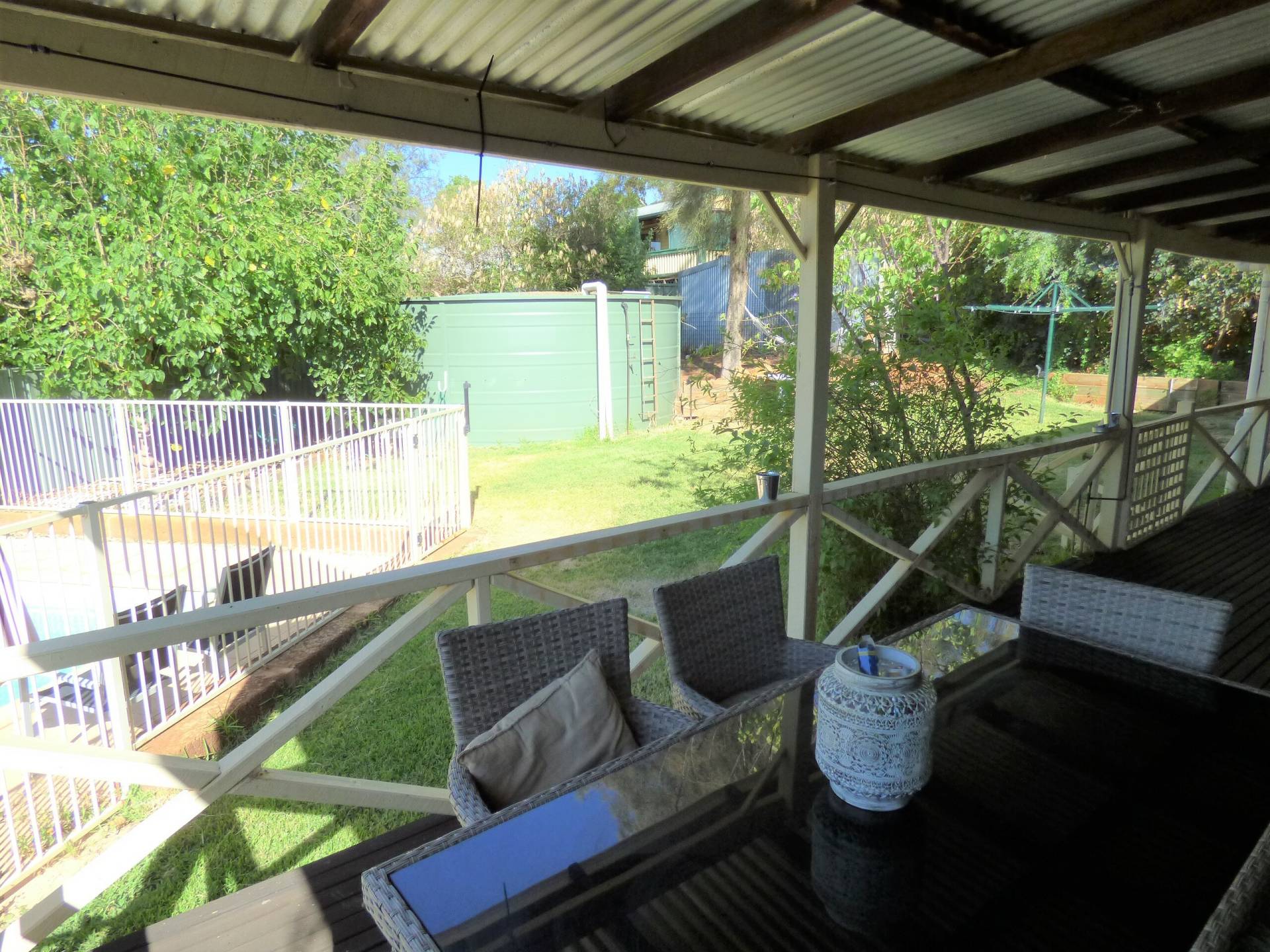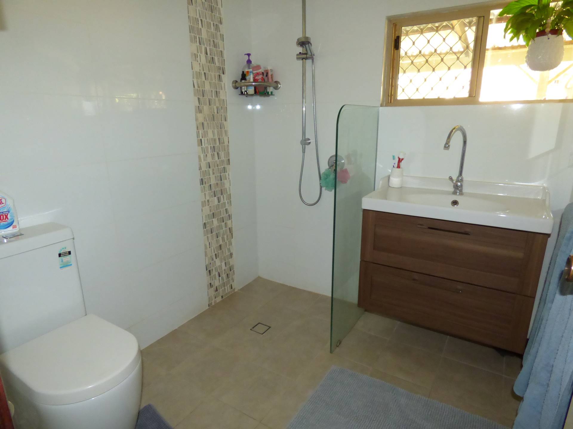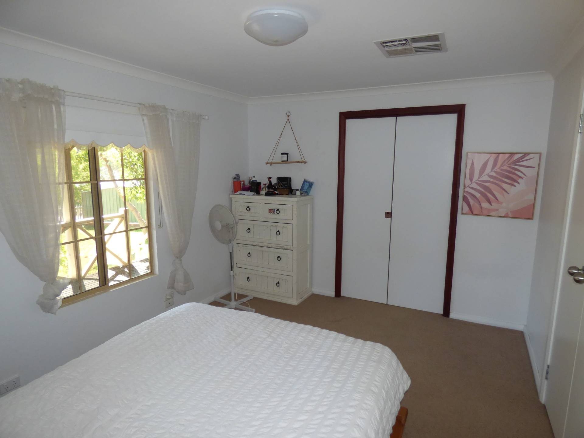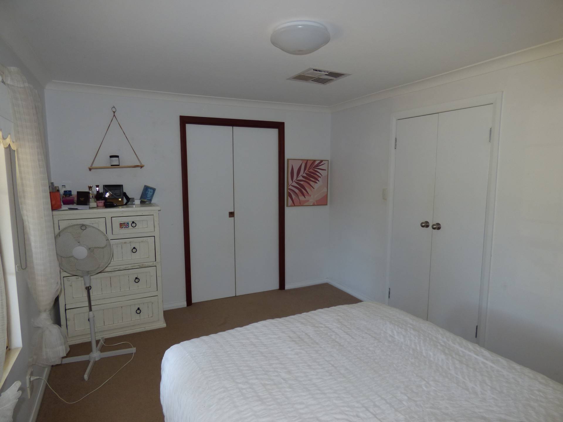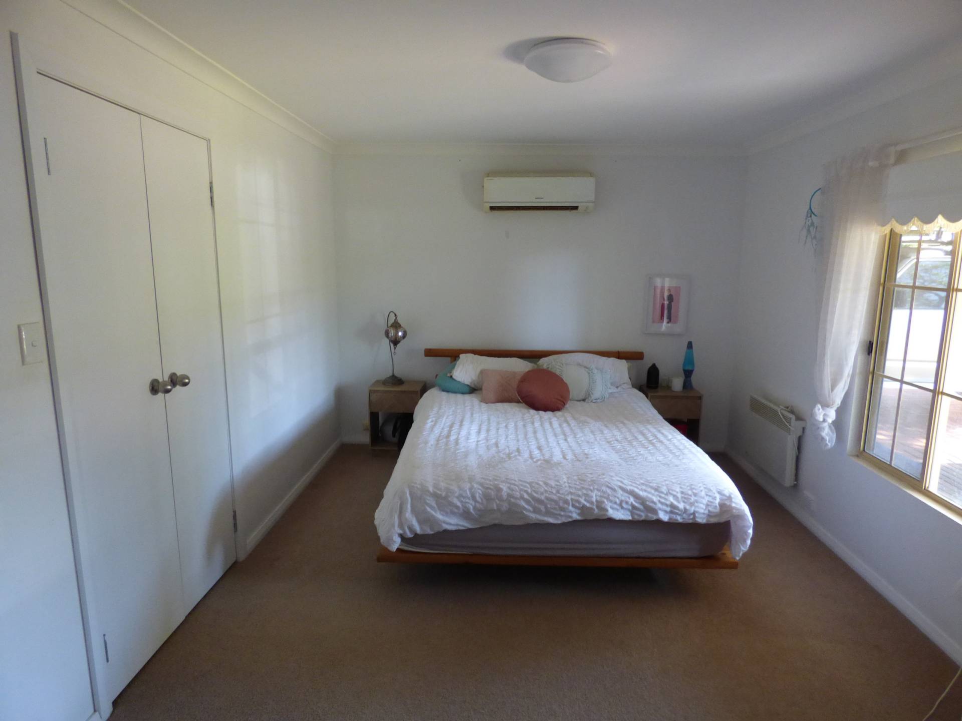 The second bedroom is past the bathroom and includes built in robe storage, evaporative AC as well as glass sliding door access to the rear veranda deck space.