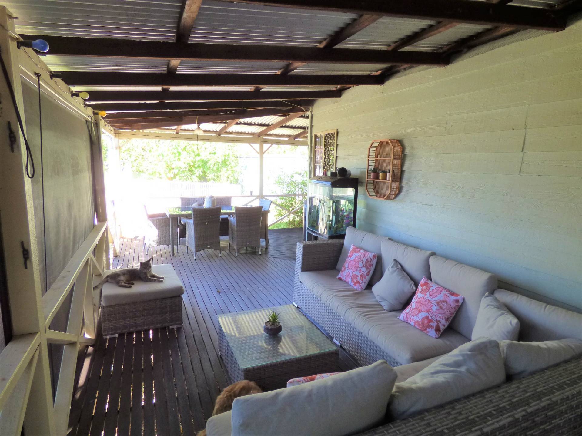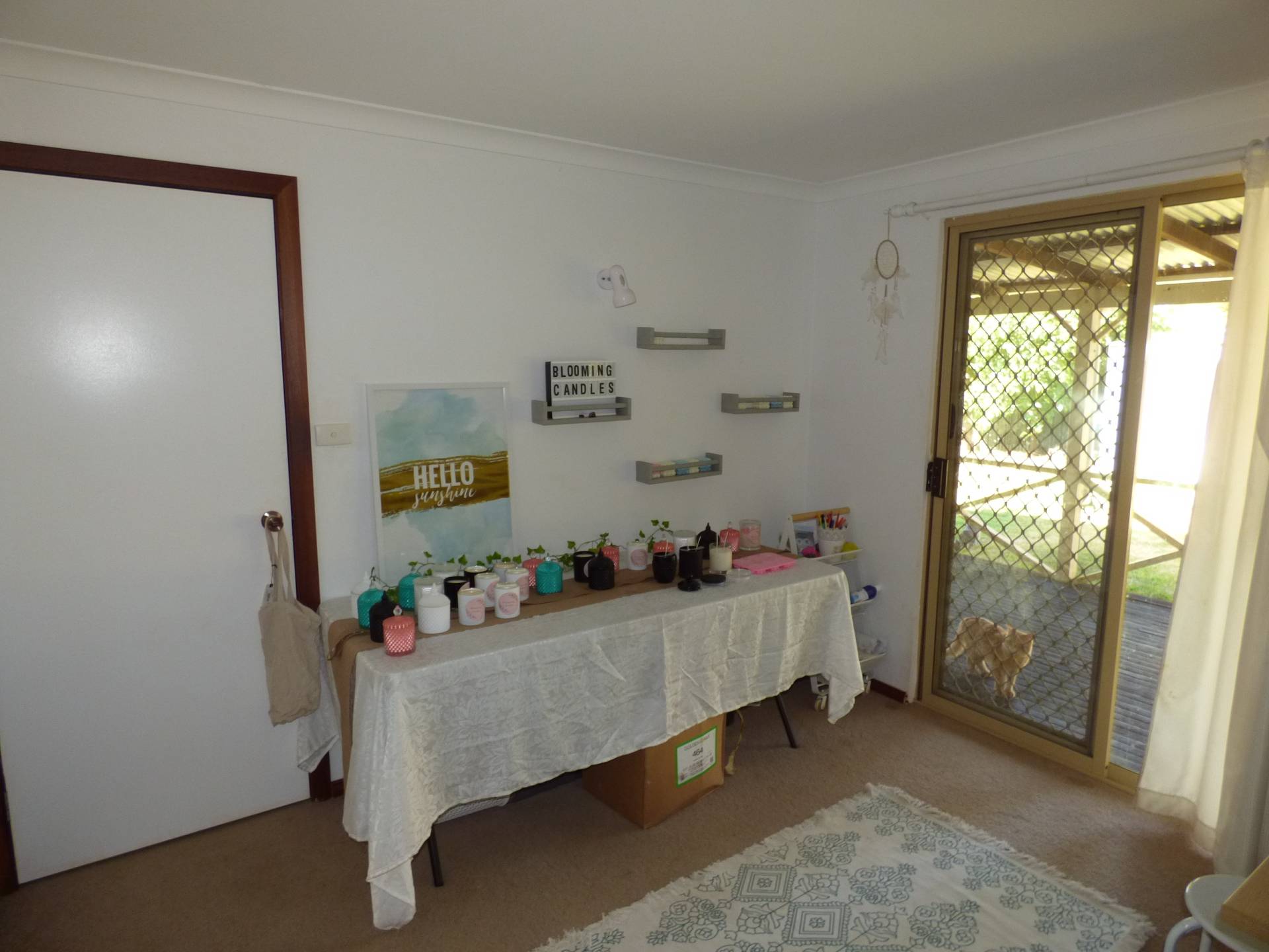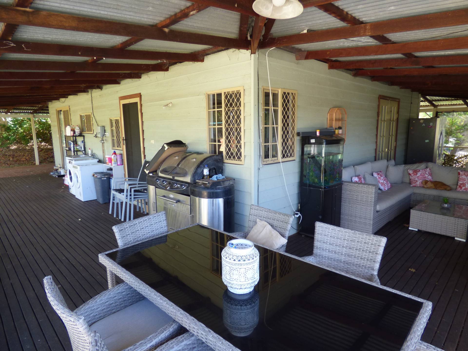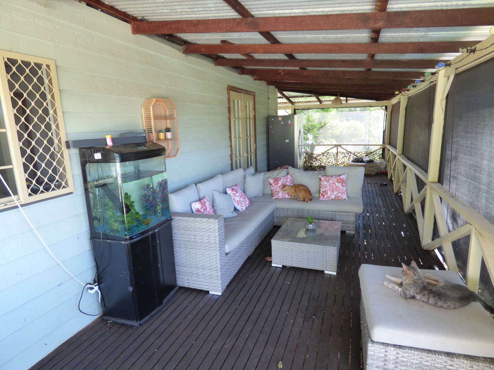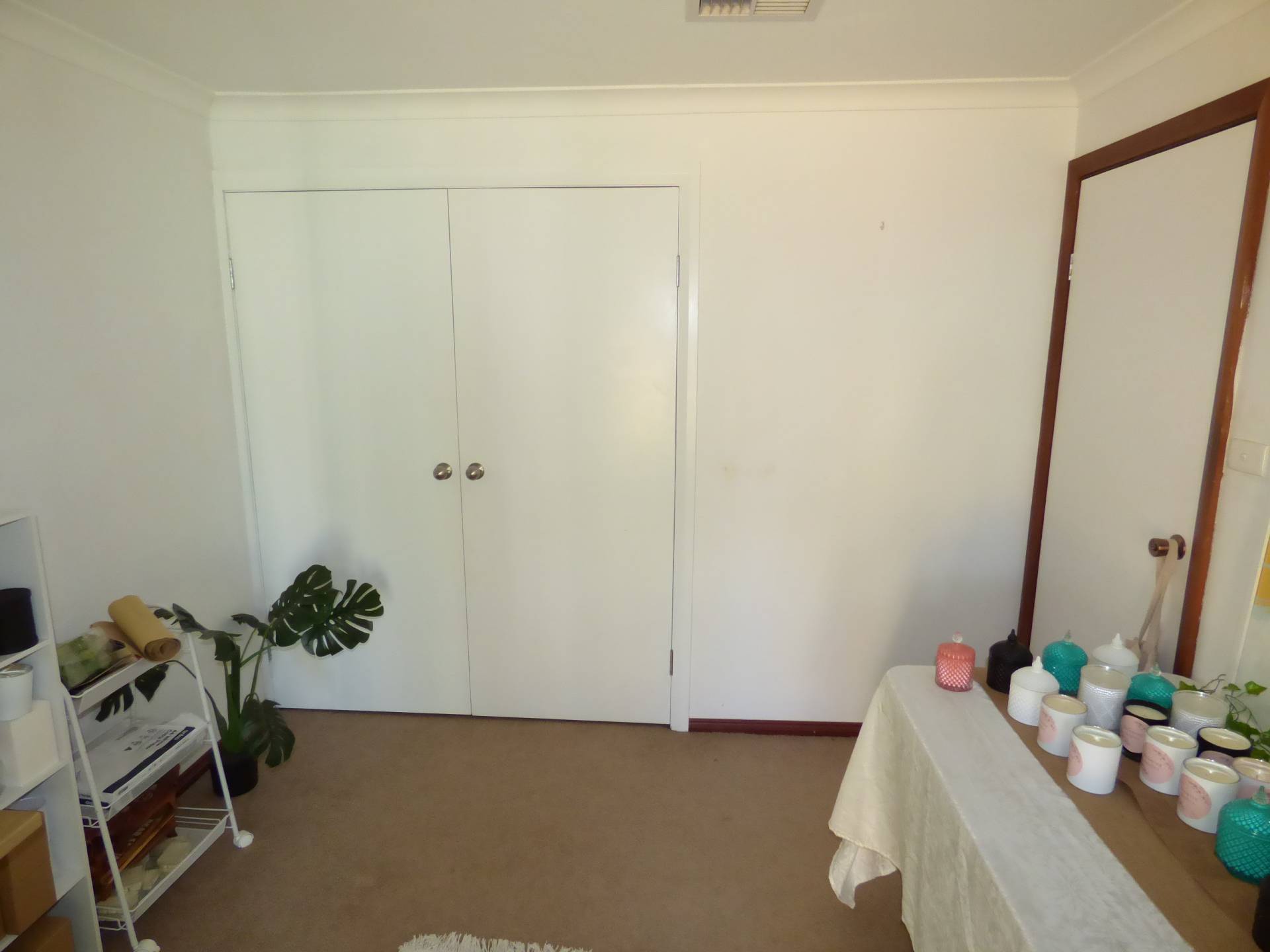 The second bedroom is past the bathroom and includes built in robe storage, evaporative AC as well as glass sliding door access to the rear veranda deck space.