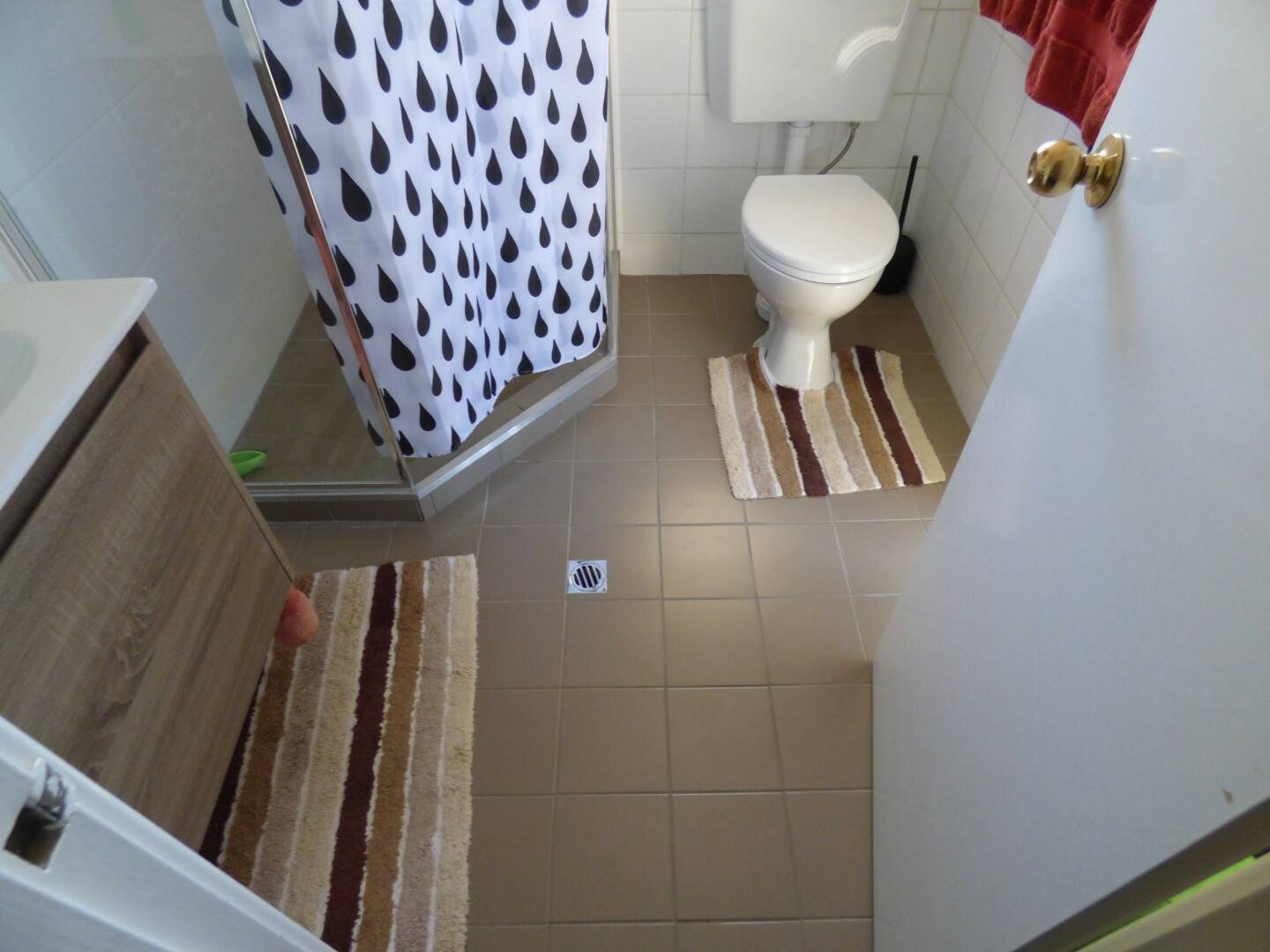 To the front of the house is the master bedroom. You walk through the built-in robe to the newly renovated ensuite which has a toilet, vanity unit and shower.