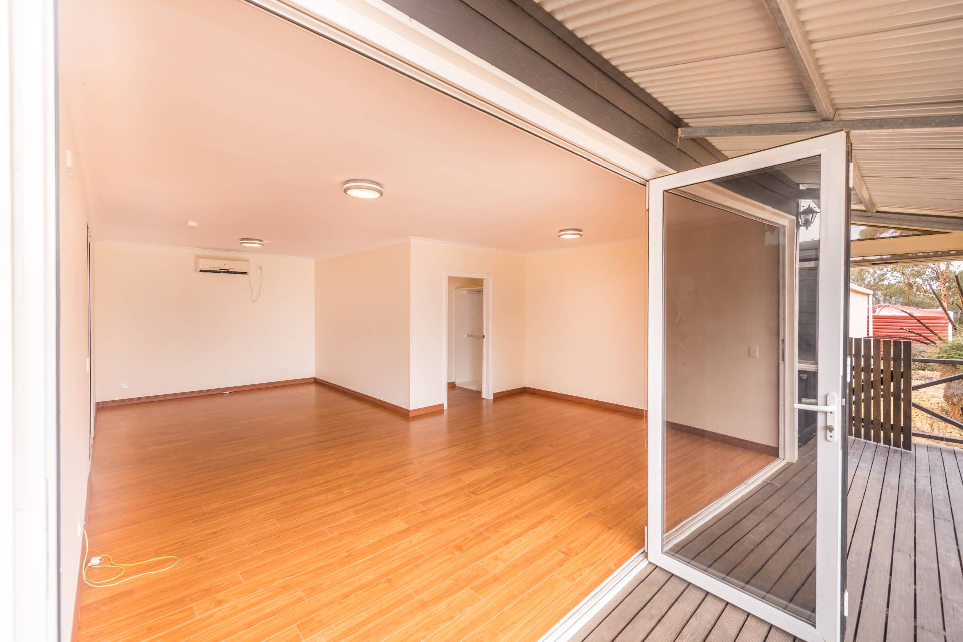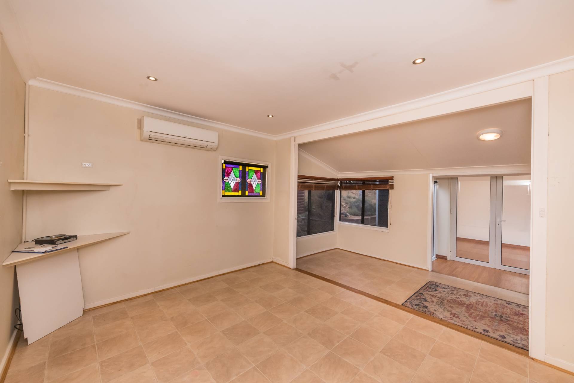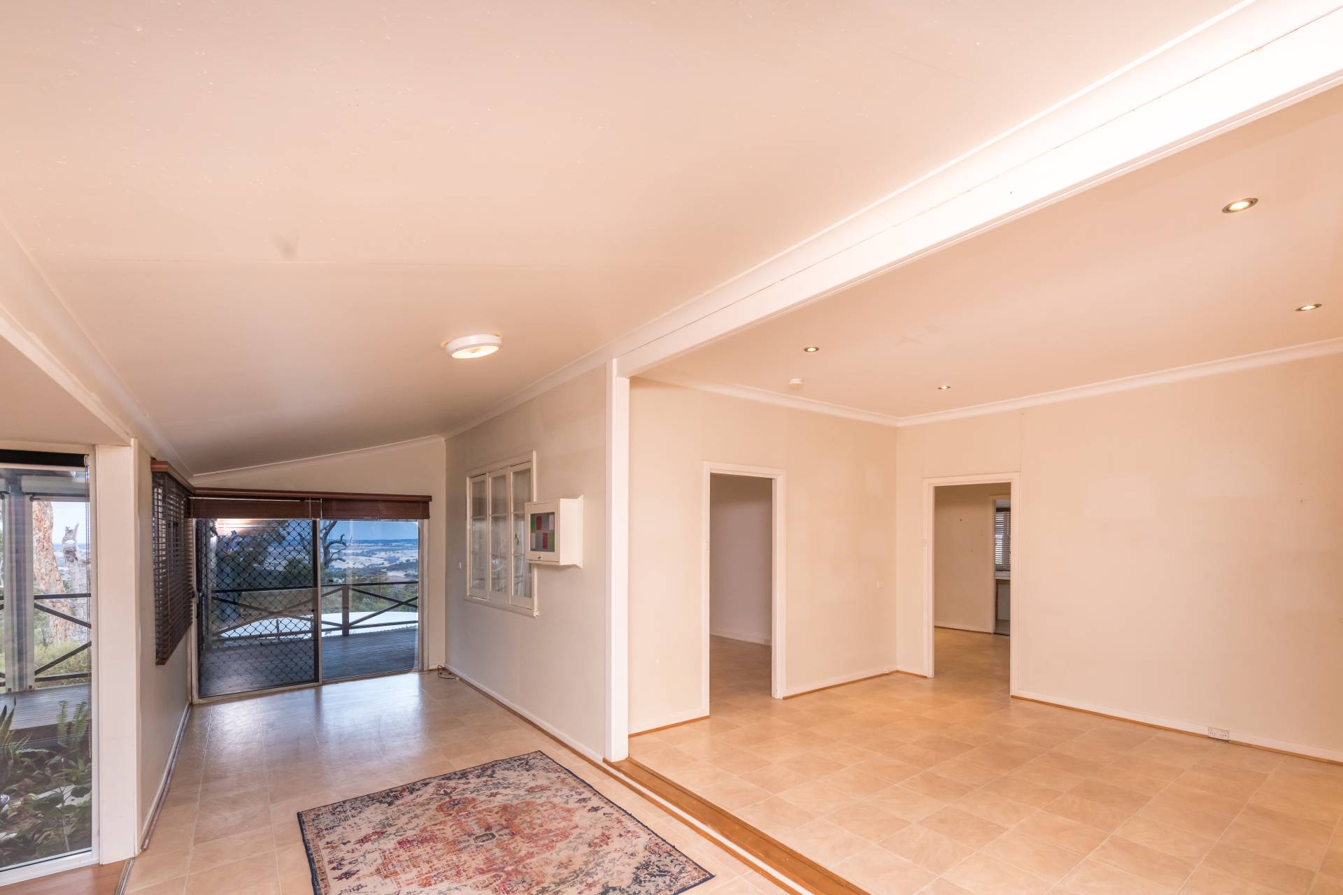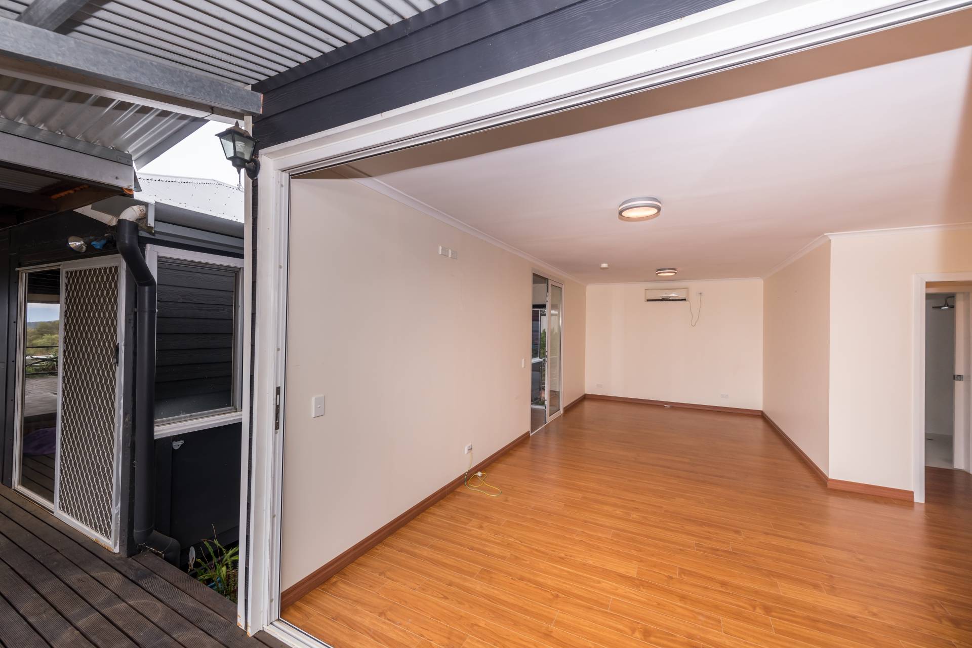 The generously sized central living room features wall mounted reverse cycle air conditioning and leads to bedroom 2 as well as the large activity room featuring raked ceilings and timber deck access.