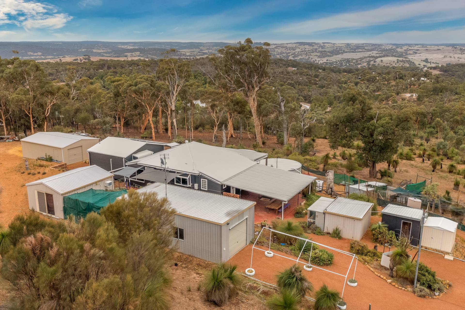 There is a lot on offer outside of this home. With 3 larges shed AND 2 garden sheds you have an abundance of room for storage and play. Featuring an outside laundry room, bird aviary, vegetable garden and the best views in Toodyay you will never want to leave!
