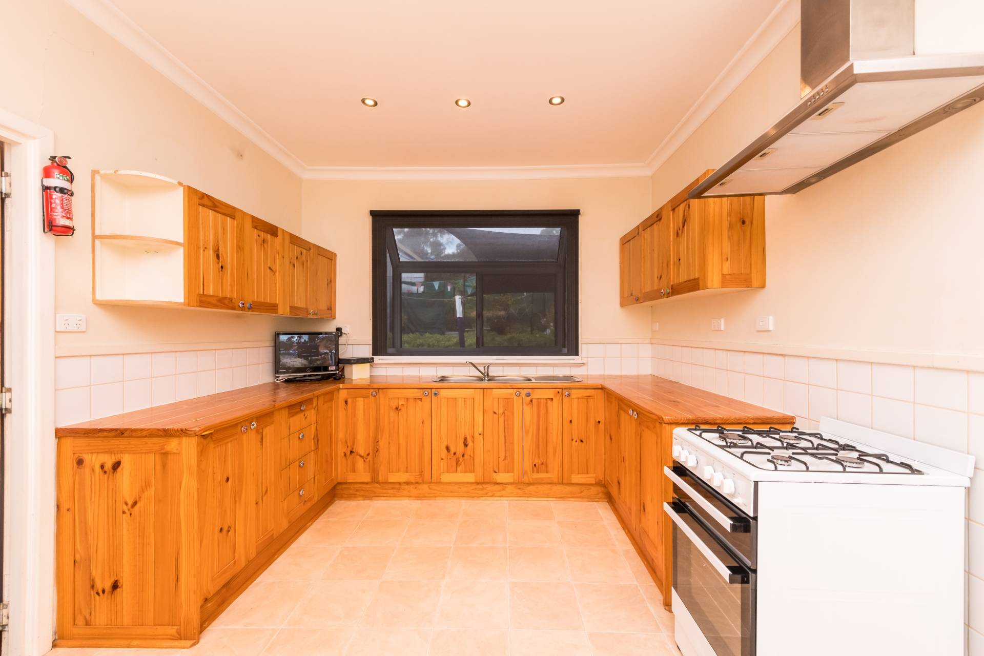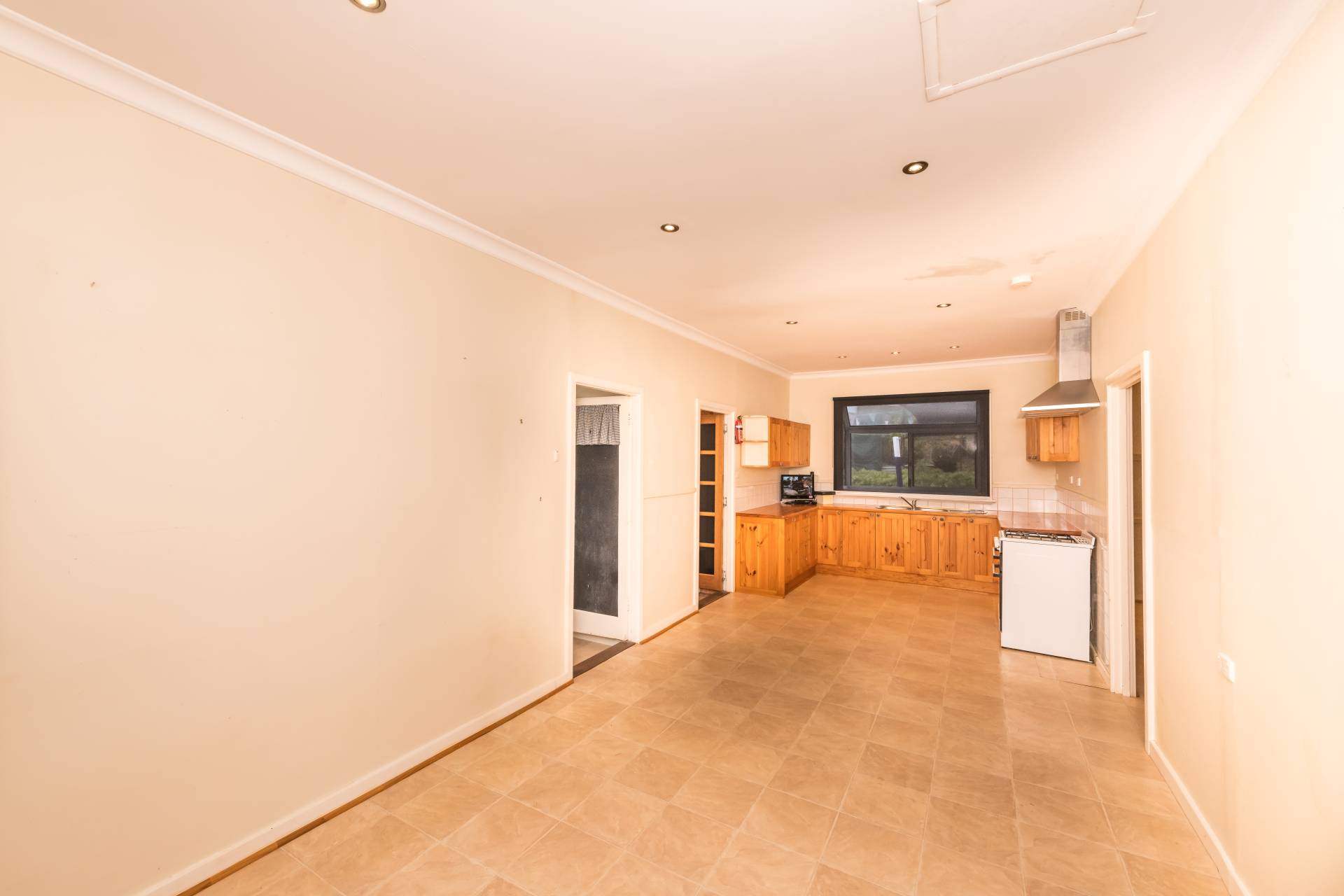 The open plan U shaped kitchen and meal space is equipped with standalone gas cooking and gives you direct access through French doors right onto the timber deck space to admire those rolling hill views!