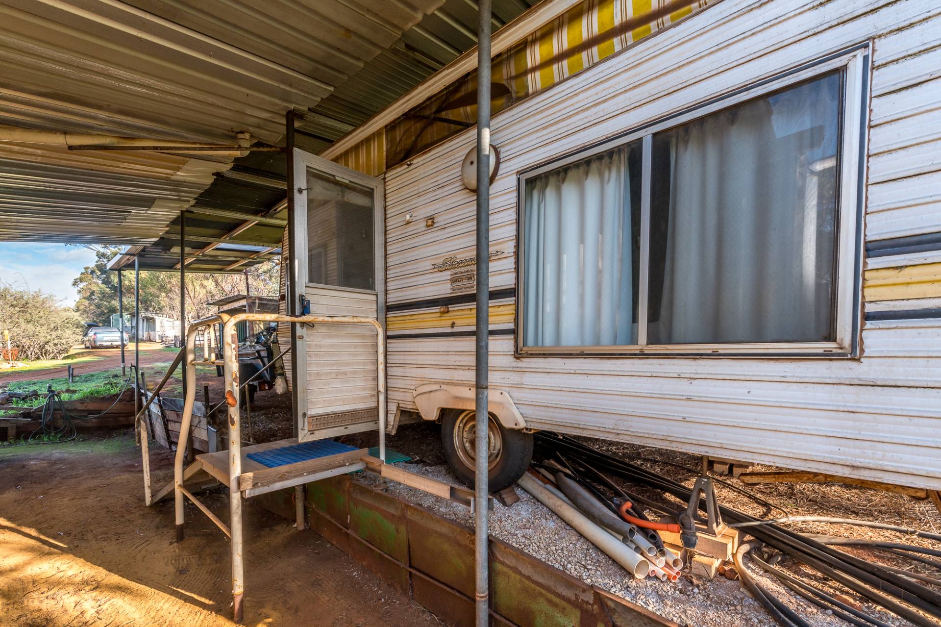 Along side the concrete and powered 9x6m colourbond shed is a caravan that is included in this sale as well as 2 x chicken pens.