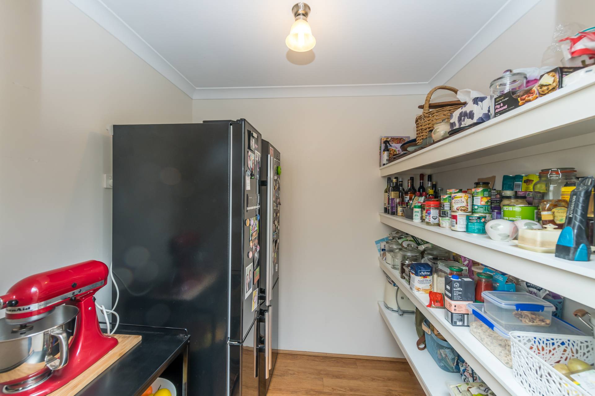 The well appointed kitchen holds a 900mm inbuilt stainless steel stove, oven and rangehood as well as providing ample bench and cupboard storage. Adjoining the kitchen is the walk in pantry which is large enough for your fridge.