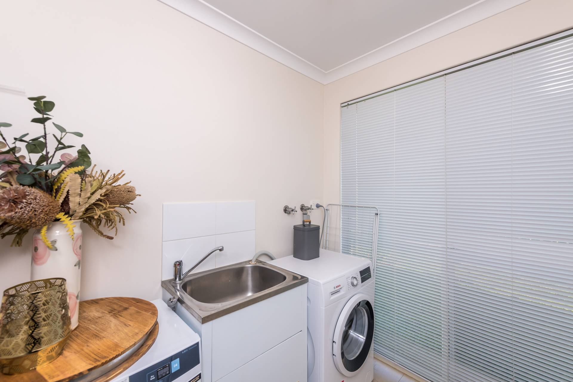 The laundry is located behind the kitchen with its own rear garden access door.