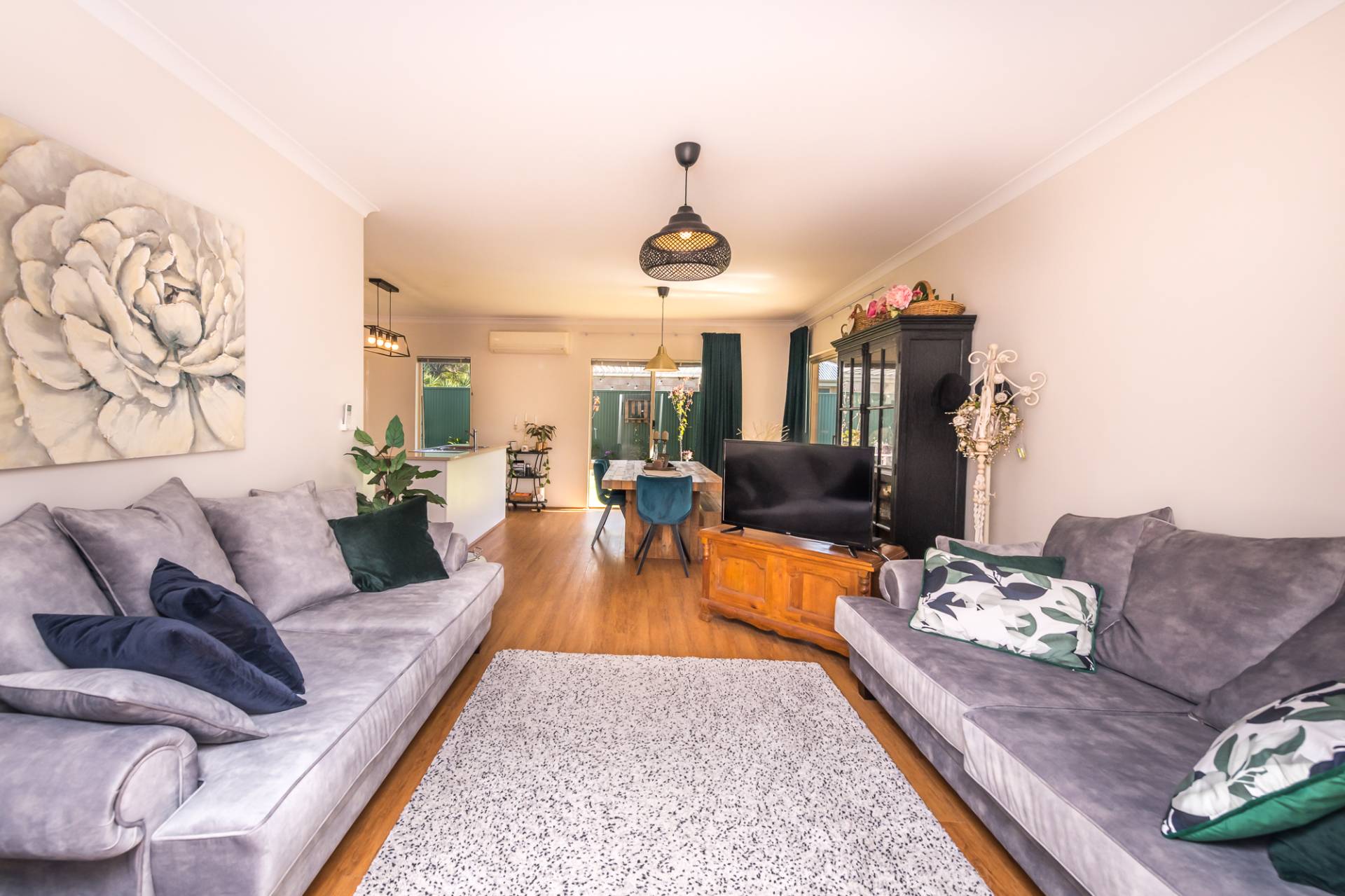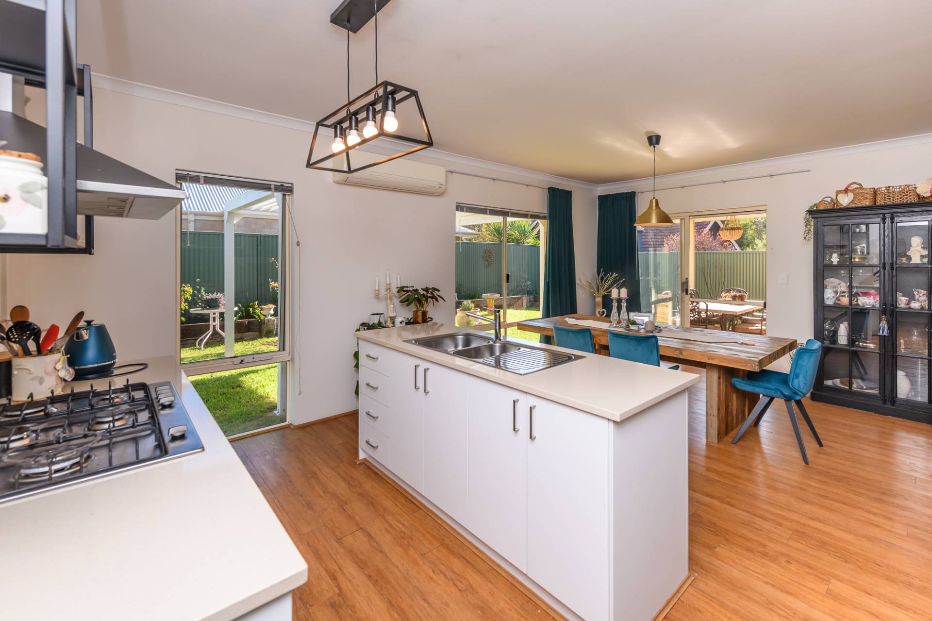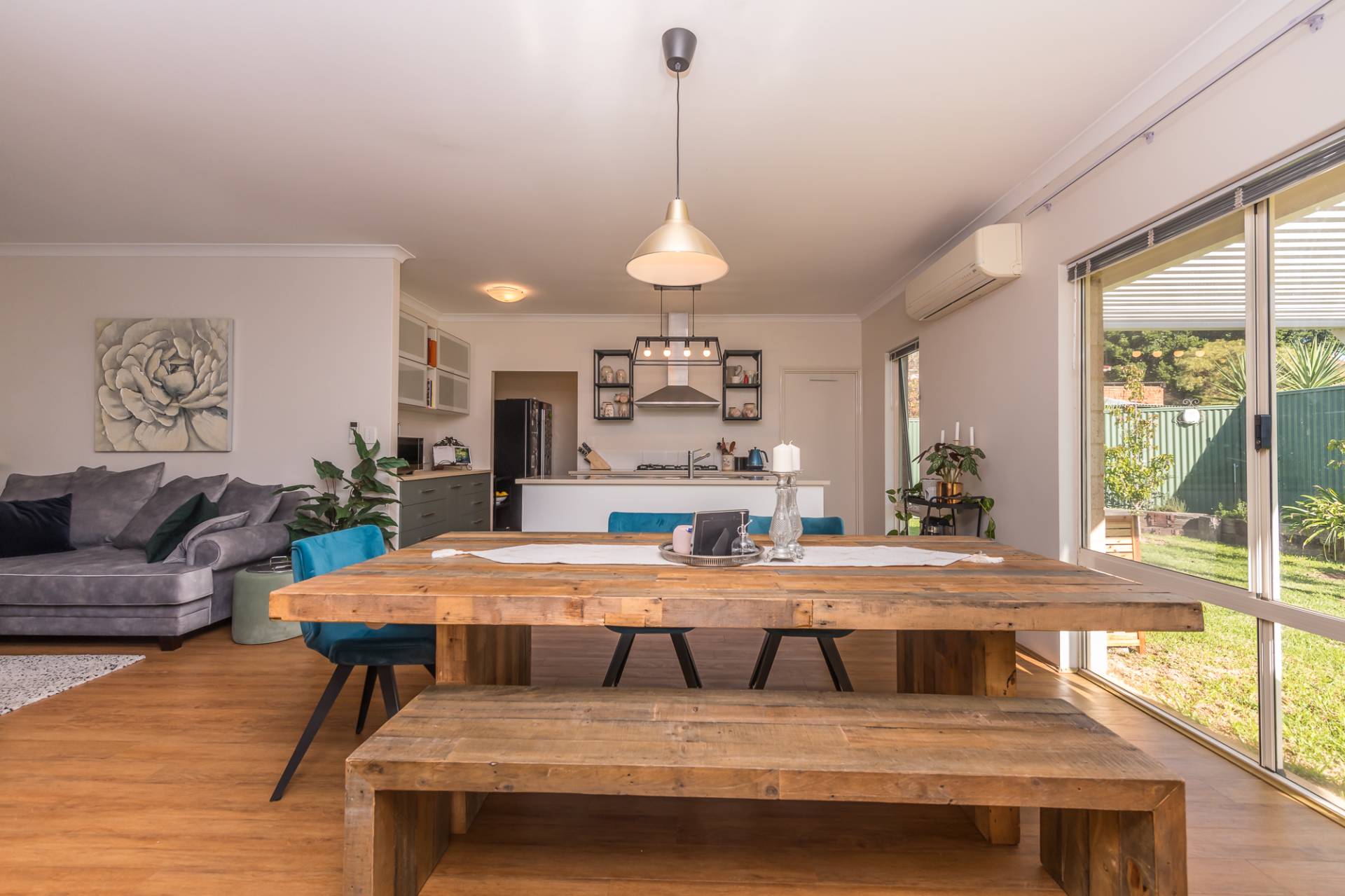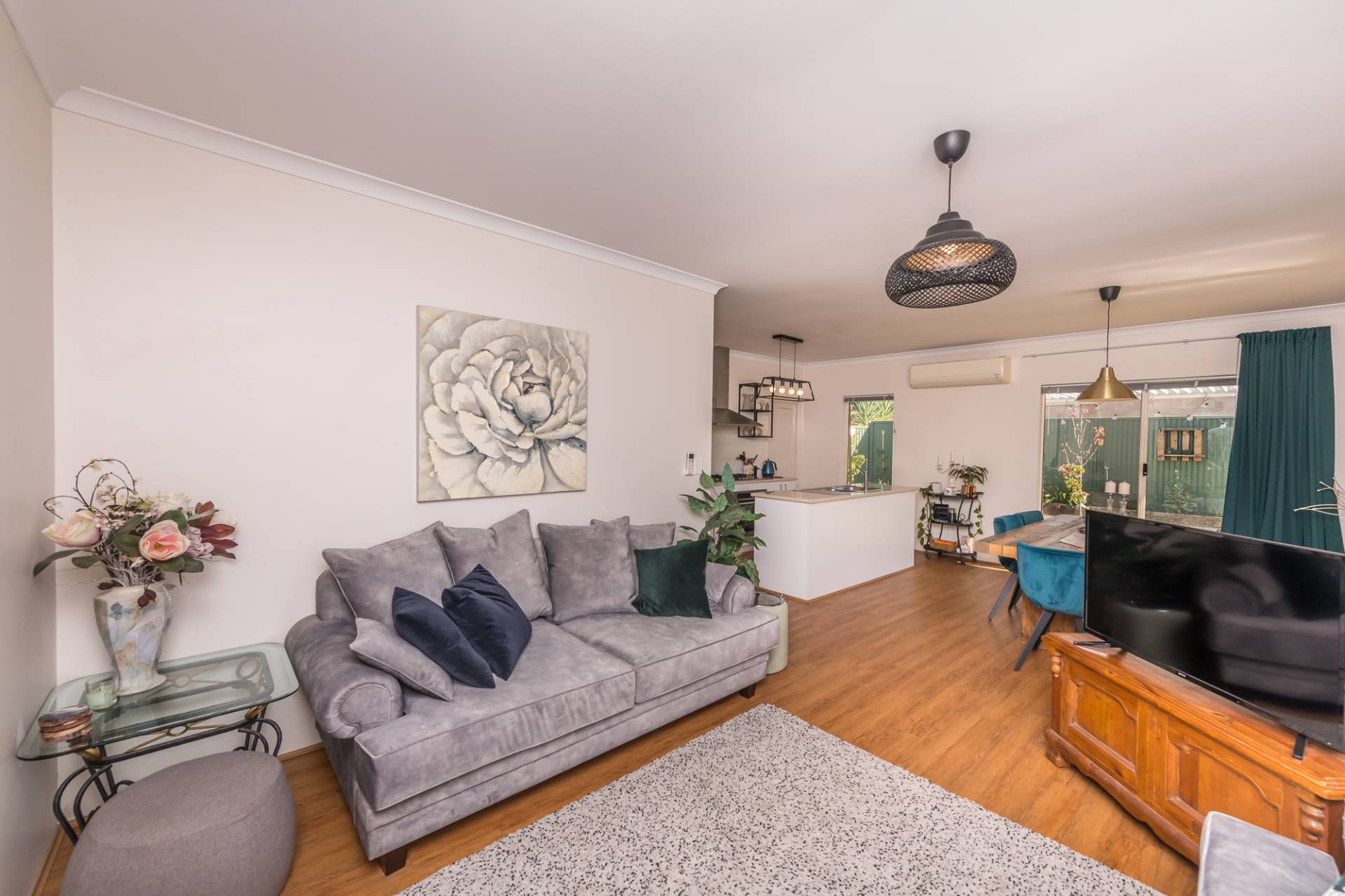Space has been used well in this build with the loungeroom flowing sleekly through to the open plan dining and kitchen areas. Finished with timber look laminate flooring, modern window treatments and a reverse cycle air conditioner, all areas maximise the use of natural light.