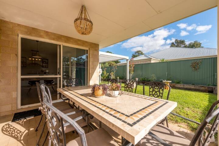 Through the dining room door, you are pleasantly invited to enjoy the perfectly presented rear garden which features timber lined country cottage style garden beds and lush reticulated lawns. An under roof alfresco space is also located here. Finishing off this area is the free standing louvered steel pergola which provides shade to inside and is addition to this home.