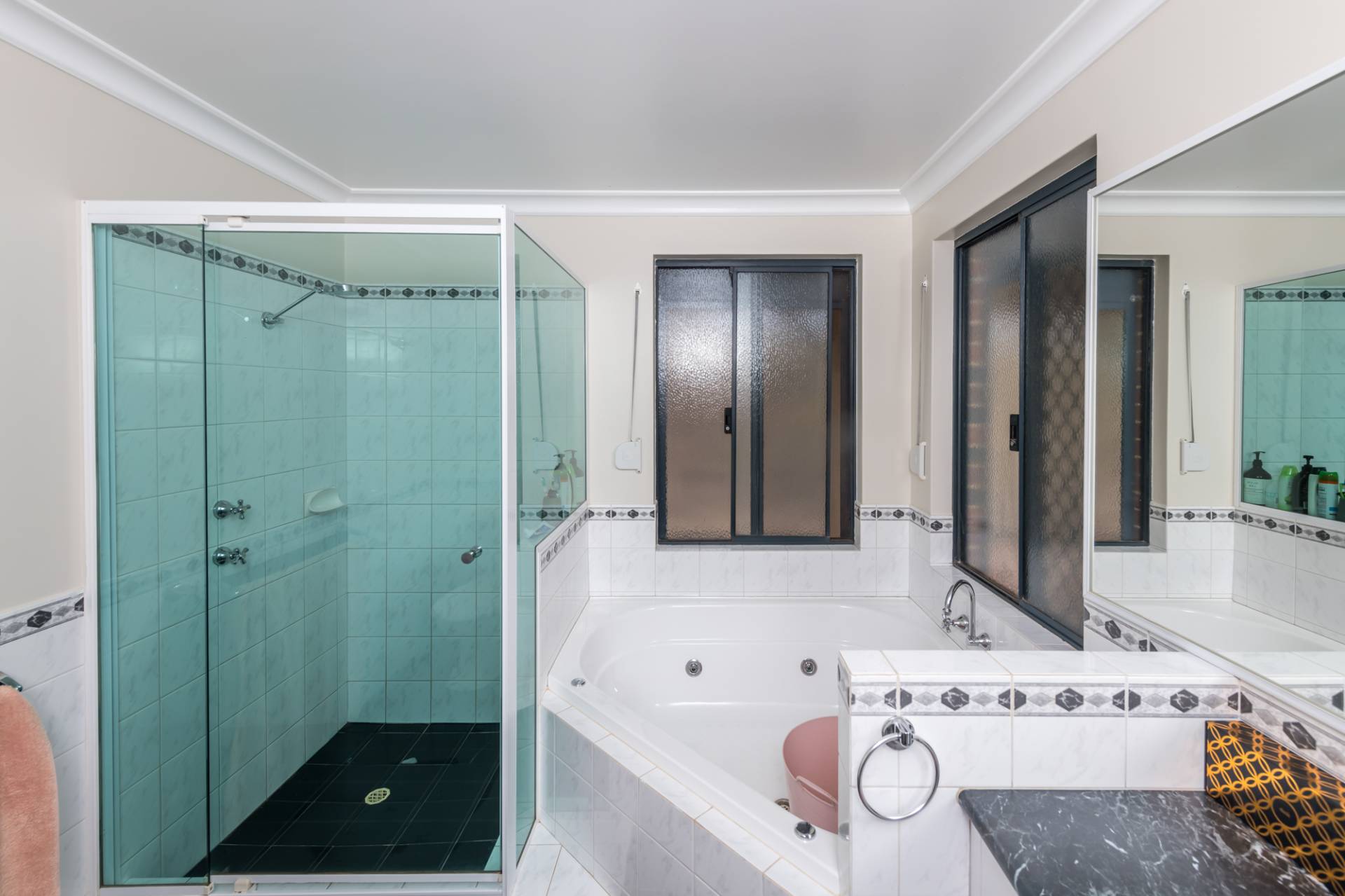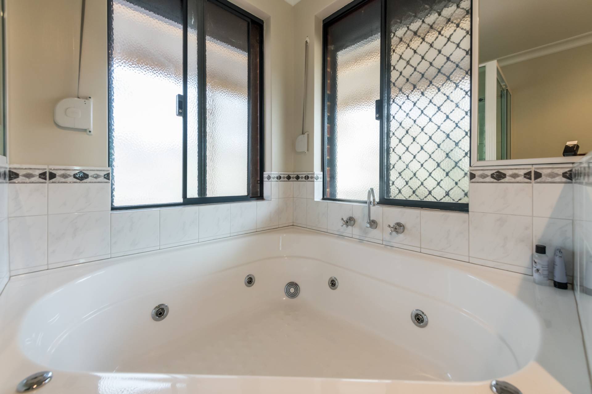 The separate theatre room makes way to the master bedroom and bedroom 4. The master suite has a large walk in robe with built in cabinetry. The ensuite has a spa bath and separate shower. Bedroom 4 has a built-in robe and would suit a nursery or office.