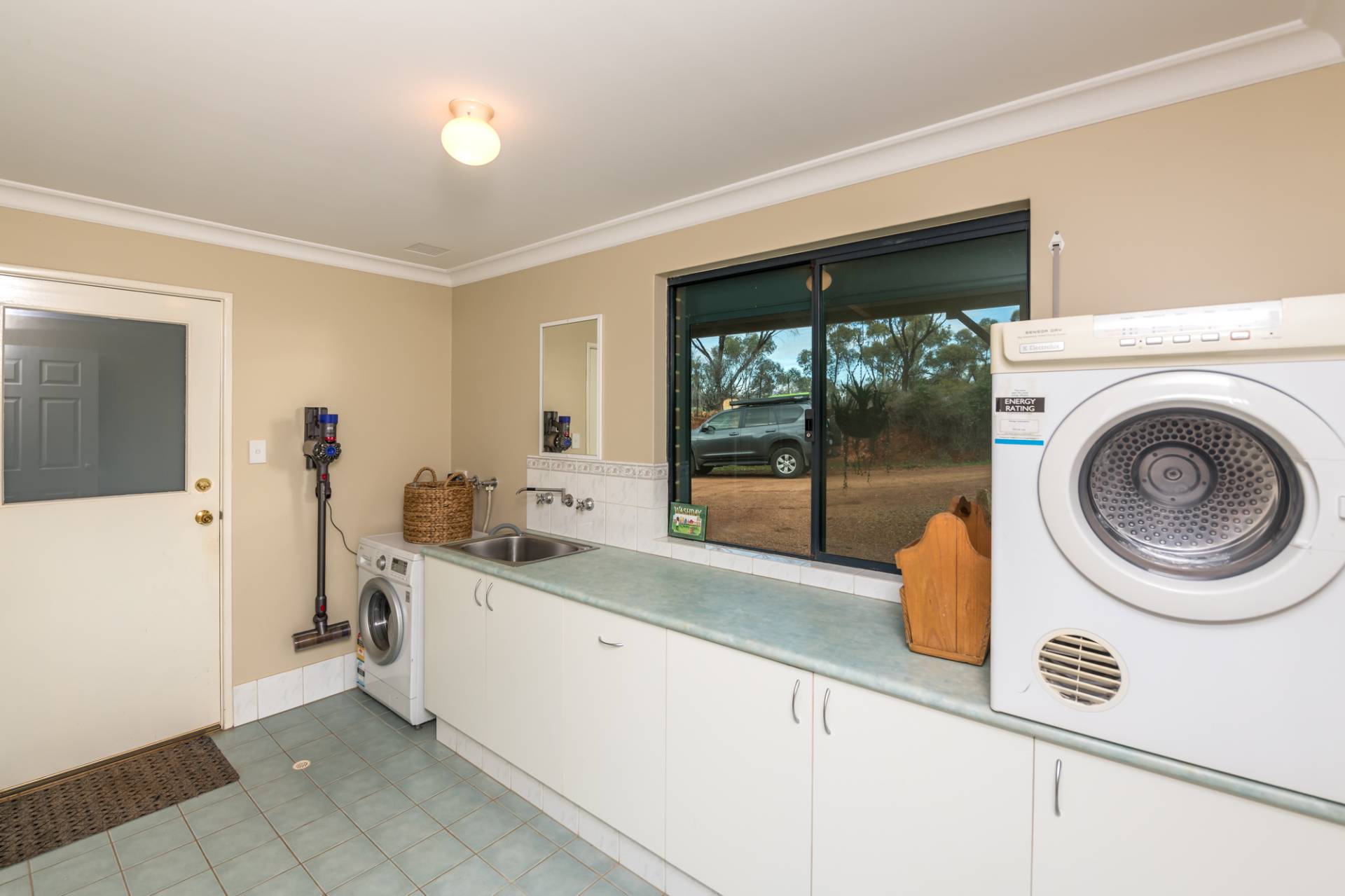 There is a spacious laundry with ample storage along with a walk-in linen cupboard, long bench with under bench cupboards. The hall way hosts an additional cupboard.