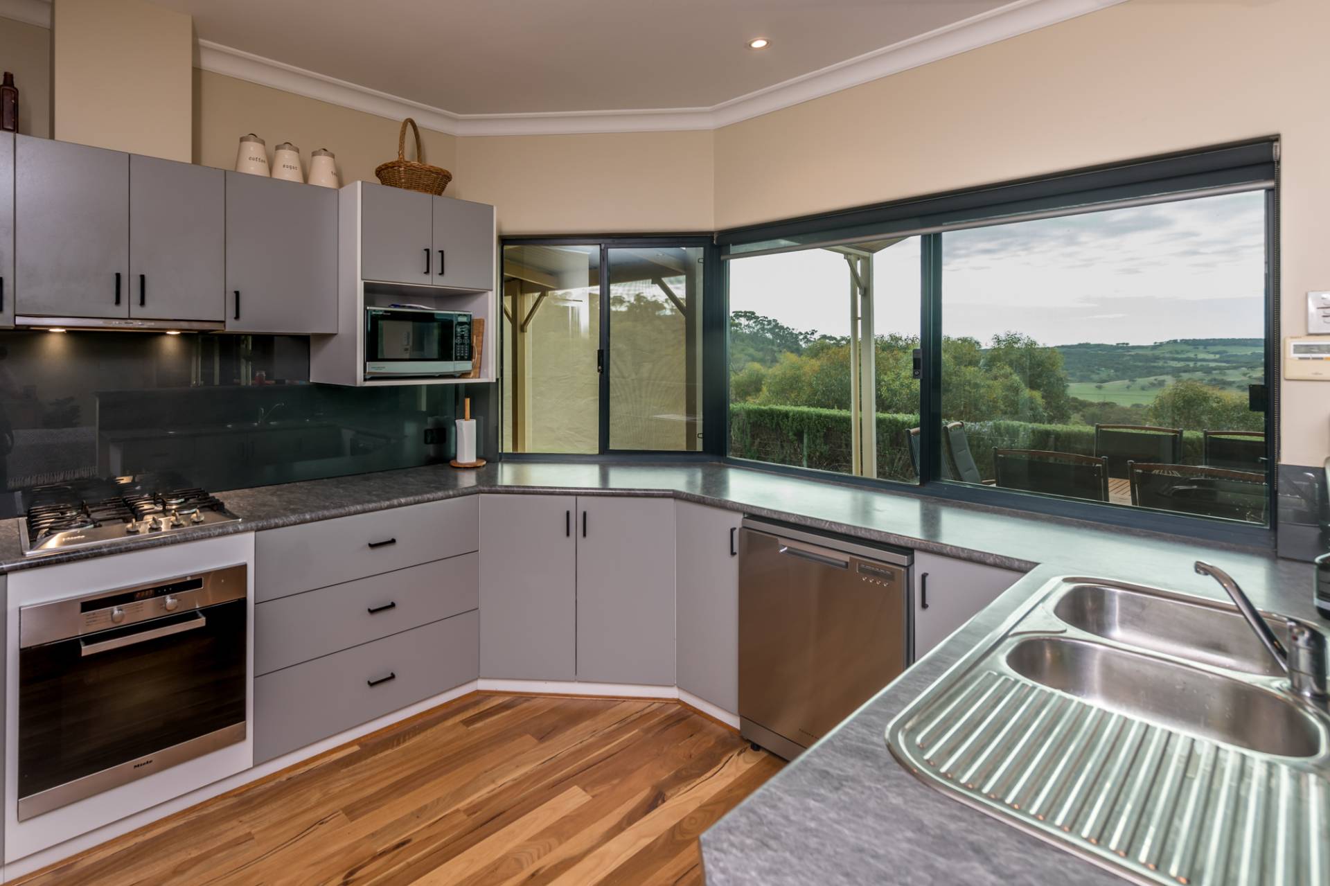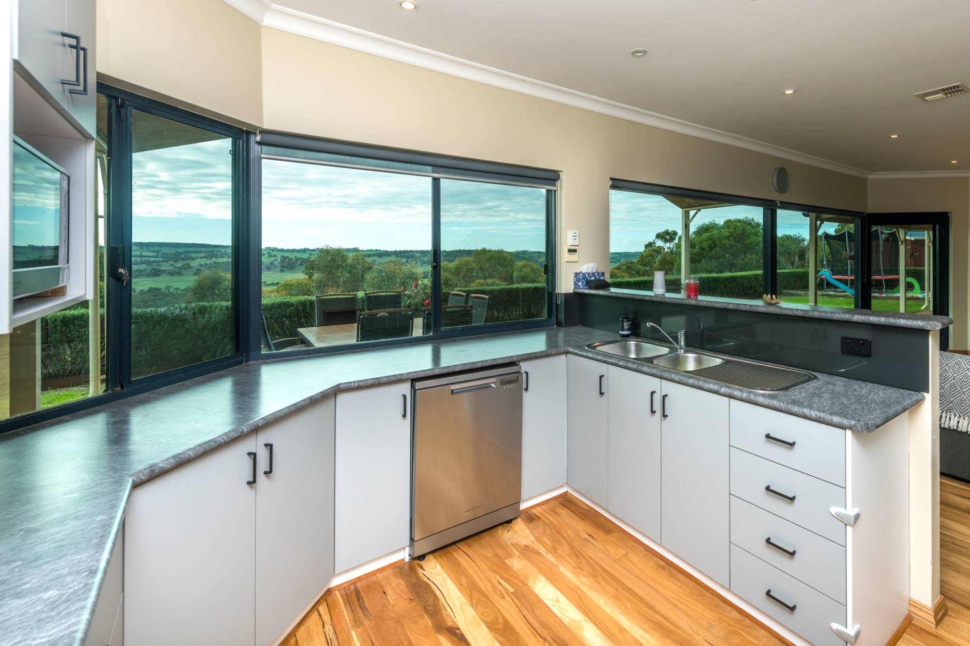 Enter into the spacious open plan dining/living area with impressive panoramic views through large scale windows. The well-equipped kitchen features stainless steel oven and cook top, walk in pantry and plenty of cupboard space.