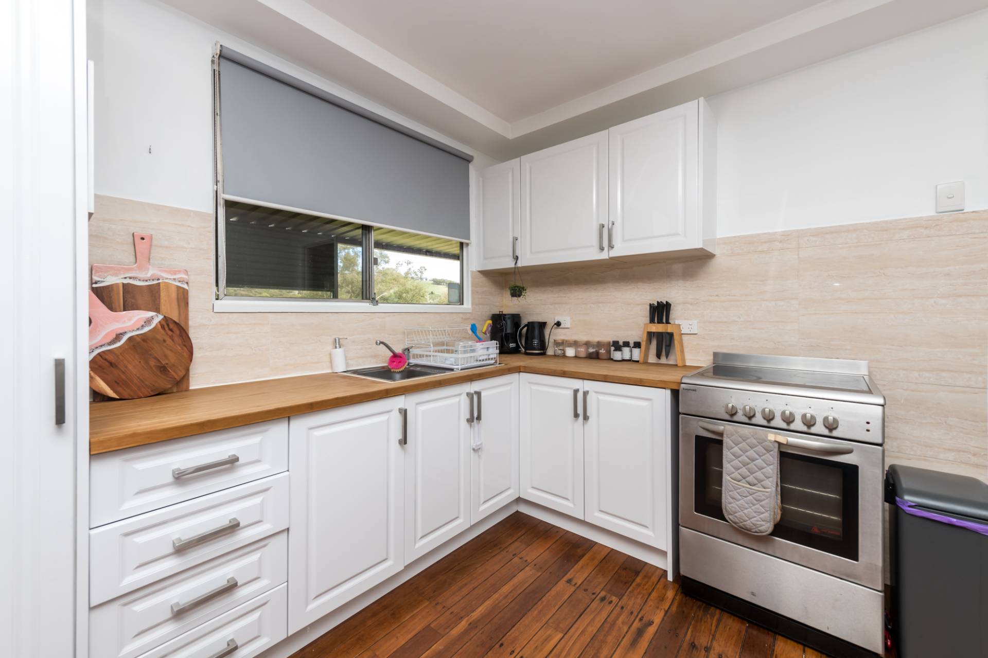This is an easy maintenance home with floorboards to the whole house. The kitchen includes a dining area is consists of electric cooking and plenty of cupboard space.
