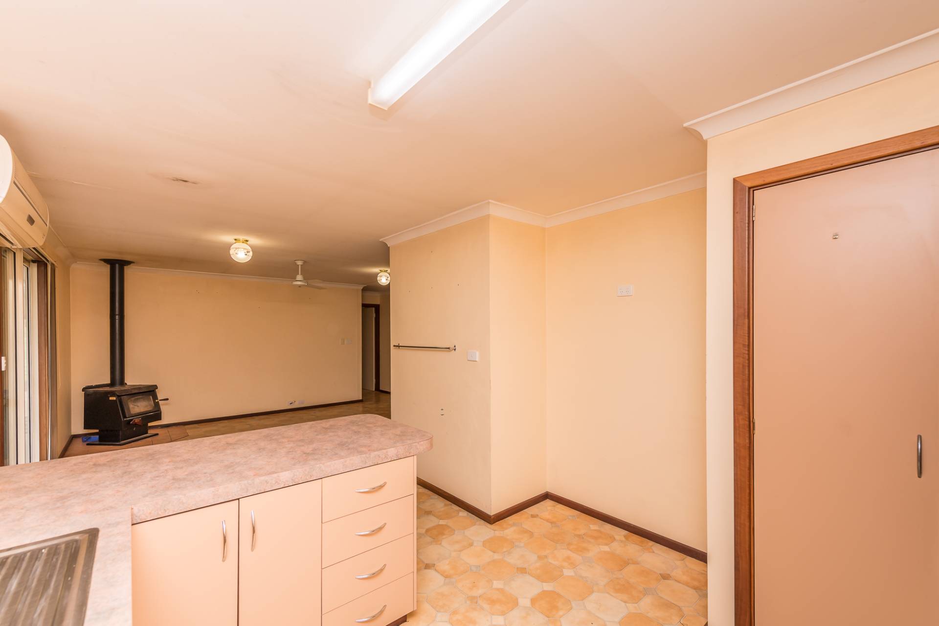 It’s a 3 x 1 with a study and separate toilet. The house has front and back undercover shading, wrap-around concrete paving and a single concrete carport at the front.