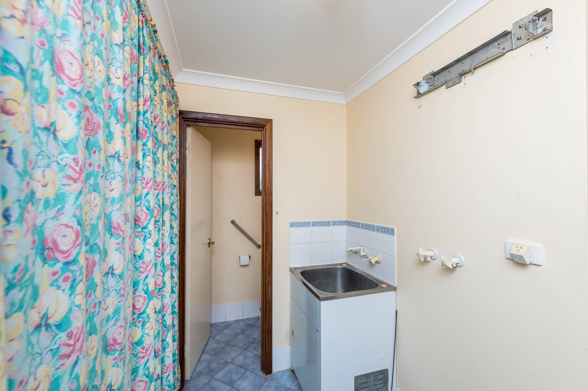 Tile flooring throughout the Bathroom, Laundry and toilet with the laundry giving access to the backyard.
