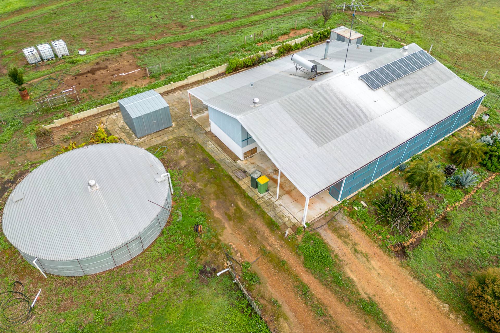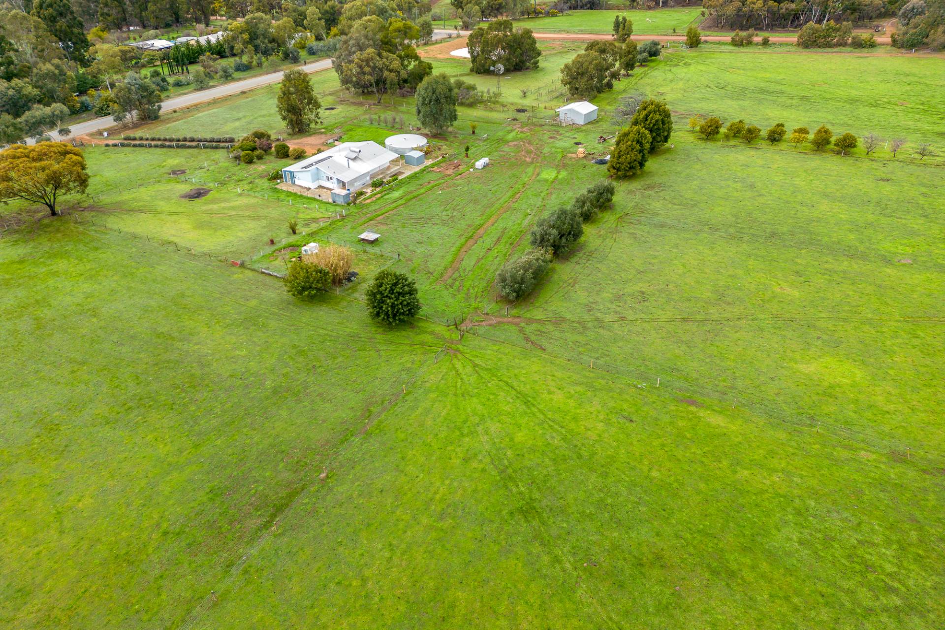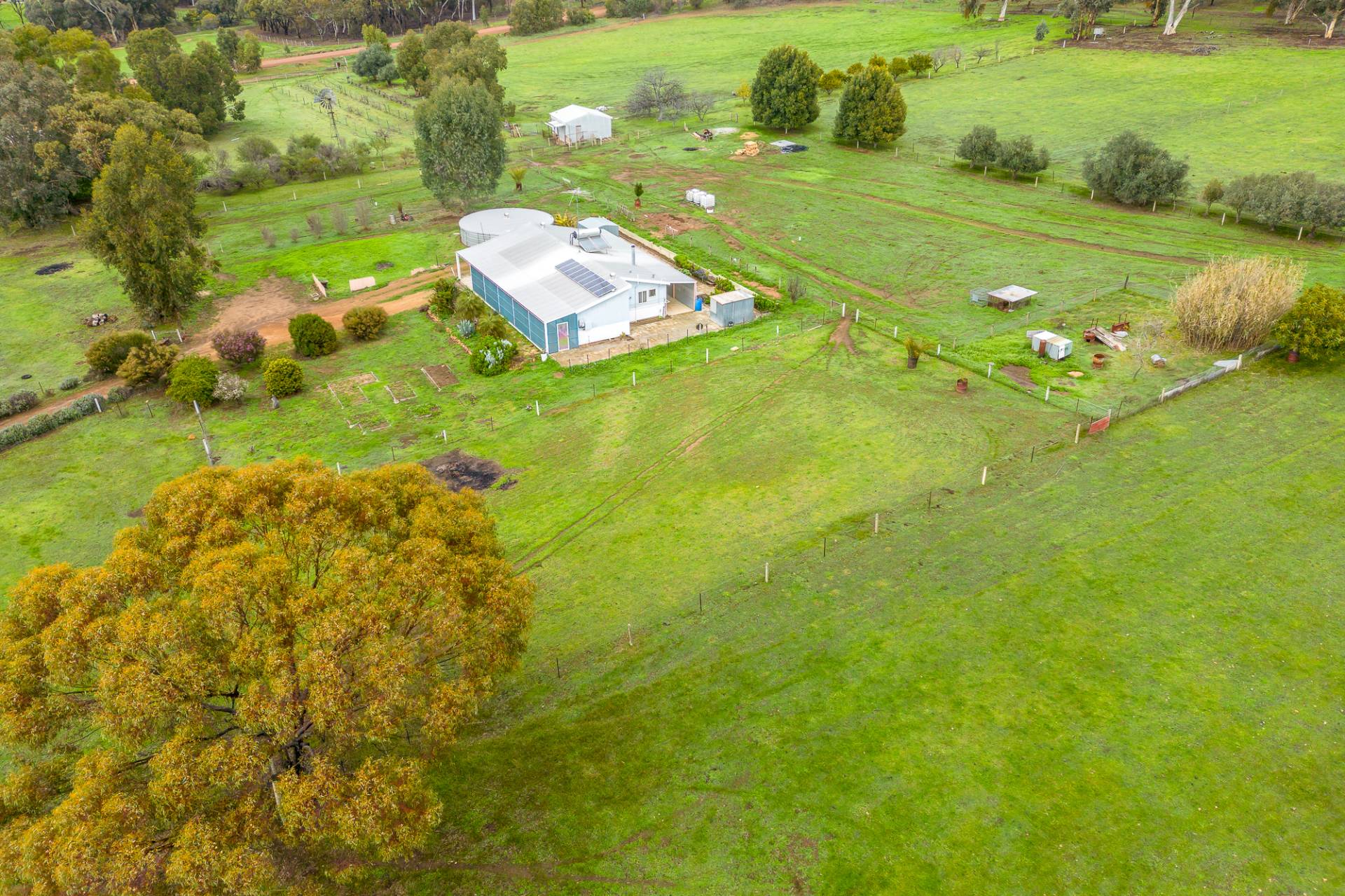Lots of fruit trees, a vineyard, 6m x 6m shed, and a large dam which is located on the left-side corner of the property.