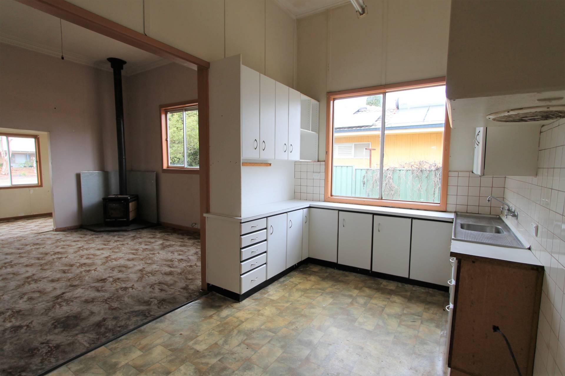 The front sitting room and lounge are located to the left. The loungeroom features a slow combustion fire place and has separate access through to the kitchen. The u shaped kitchen has an abundance of cupboard space.