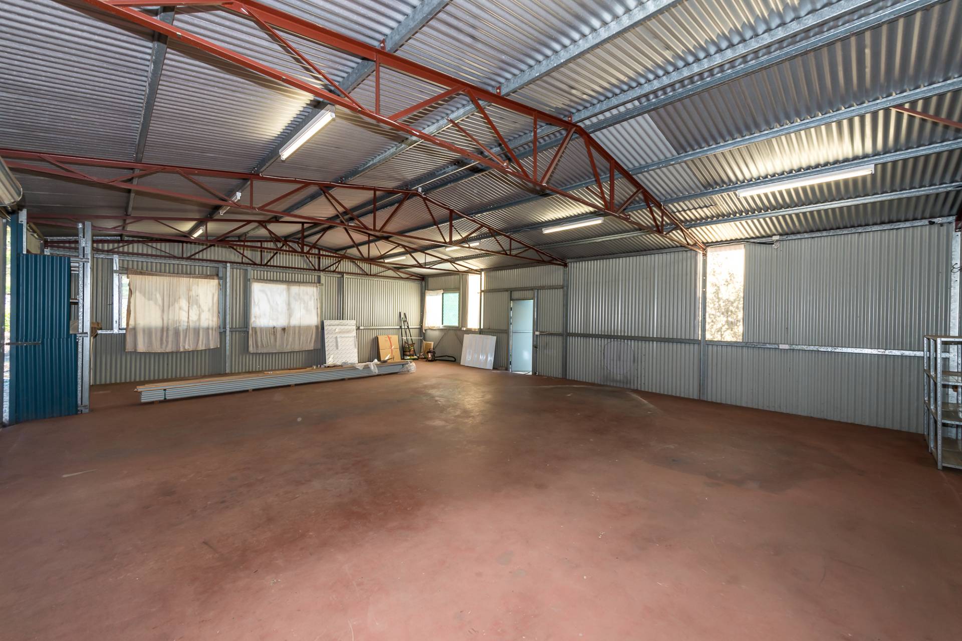 -          Large workshop shed with concrete flooring and power