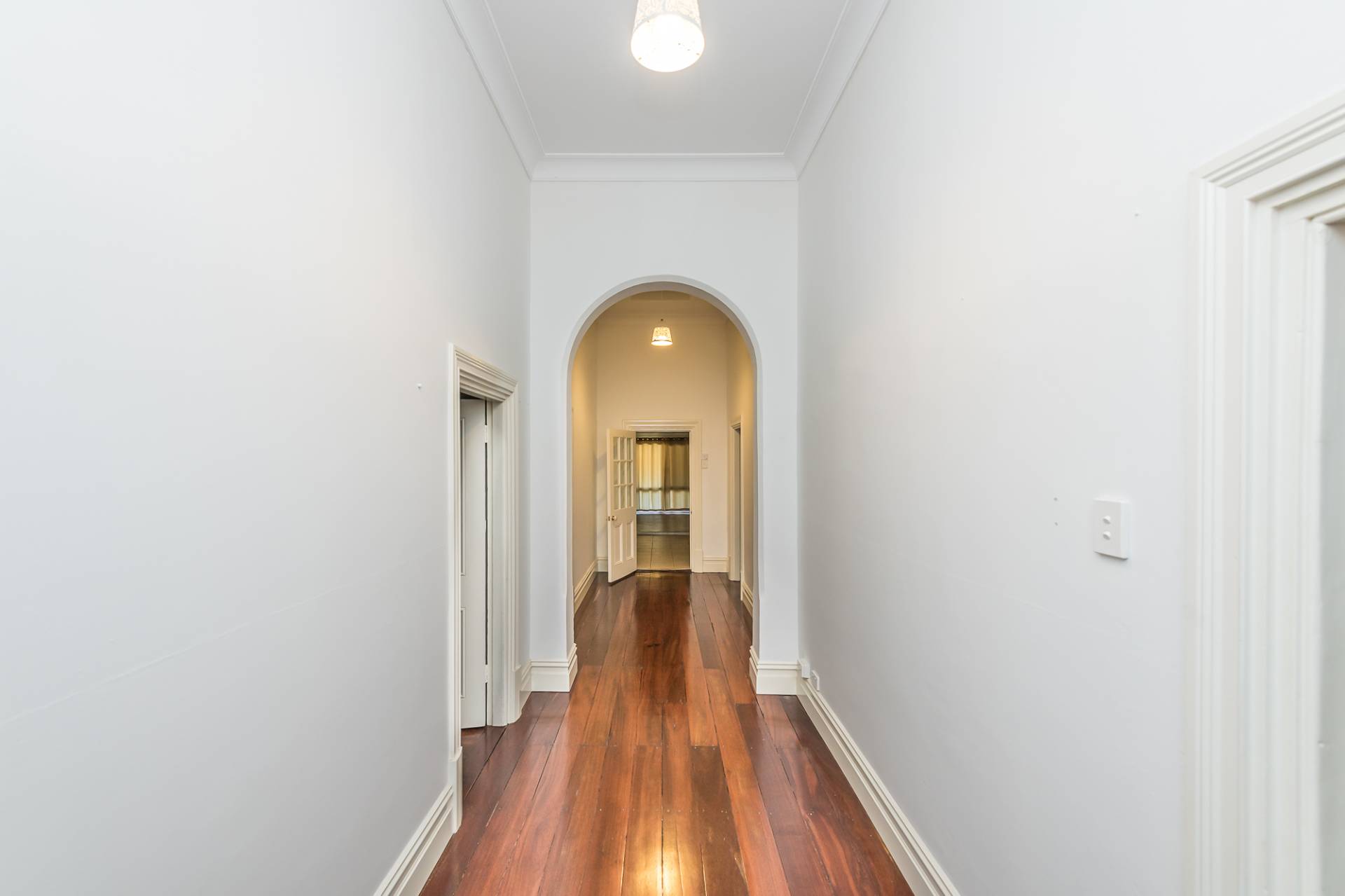 Welcoming you into this historic home is the entry hall which gives access to bedrooms one through to four. All bedrooms feature polished hardwood timber flooring, high ceilings and classic open wood fire places. Ceiling fans are located in the two front bedrooms.