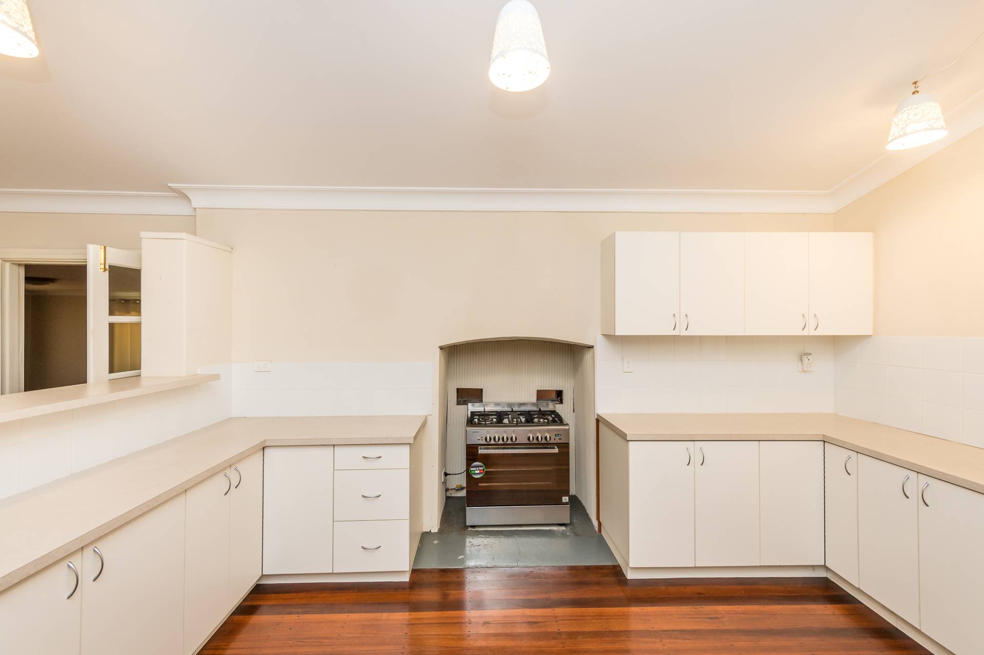 -          Large updated kitchen with 900mm oven and loads of bench space and cupboards