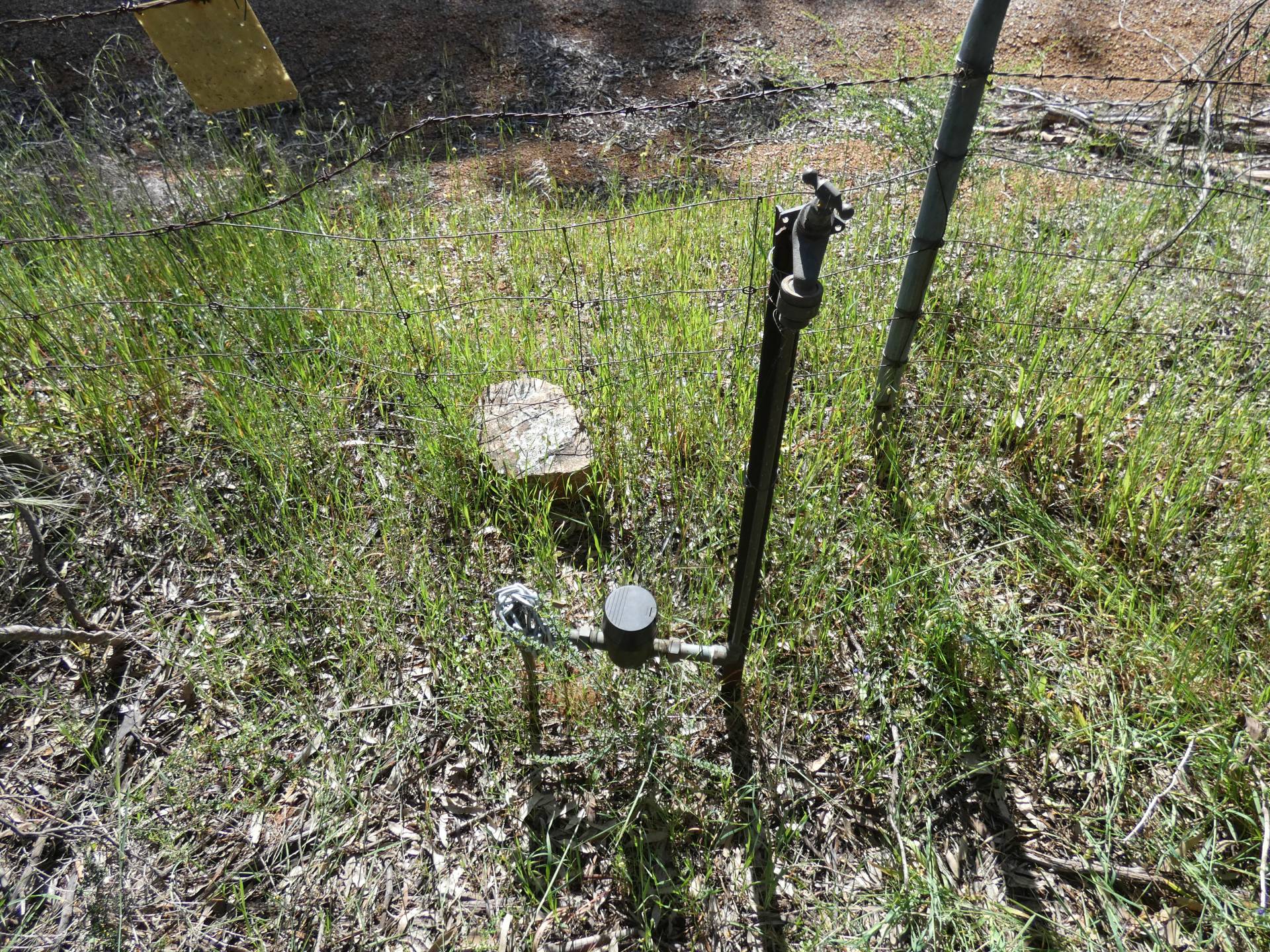 The mains water meter and tap have already been connected and are located at the front boundary line, but there is also a 2,000L rainwater tank collecting runoff from the shed.